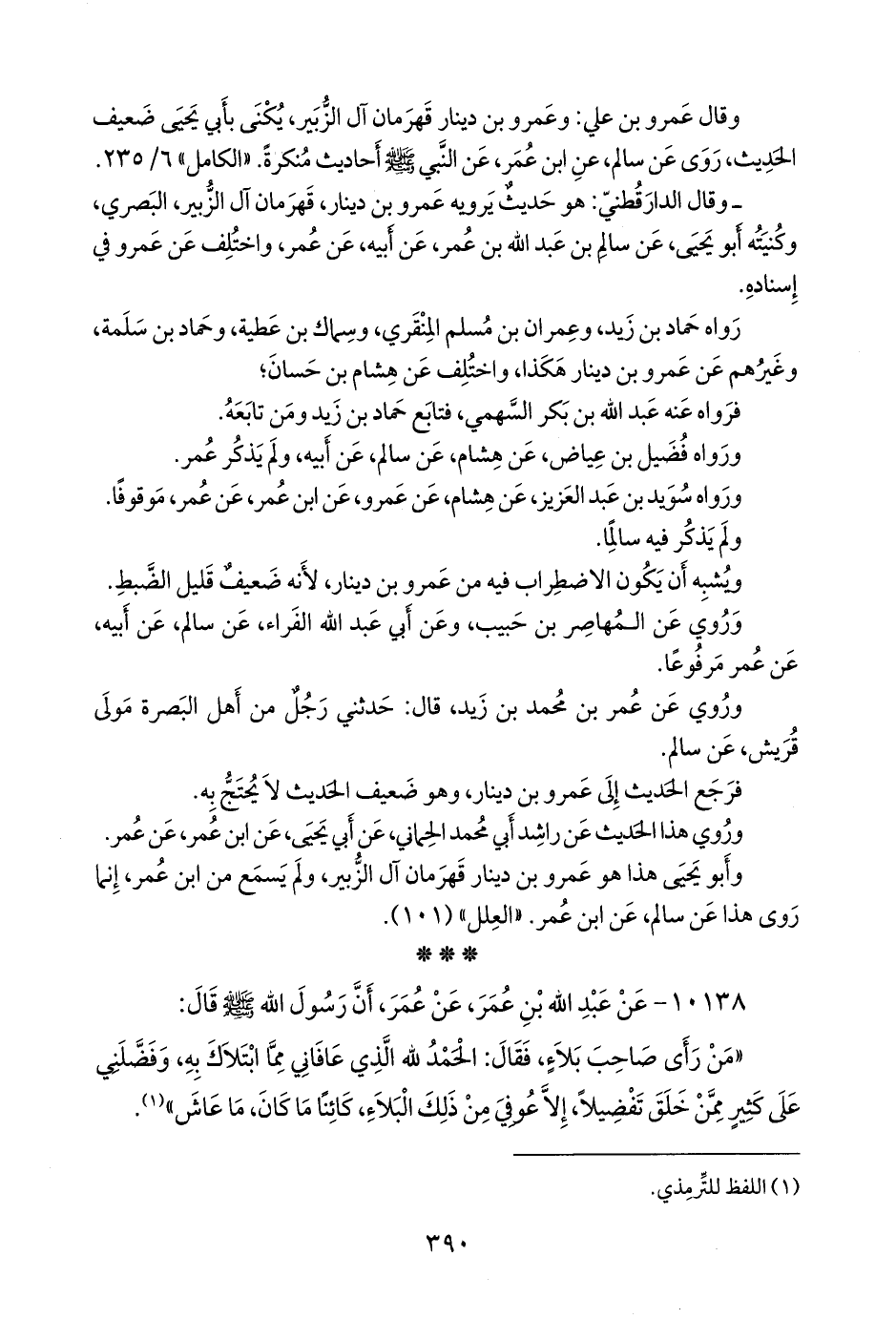 - قال التِّرمِذي: هذا حديثٌ غريبٌ، وعَمرو بن دينار، قَهرمان آل الزبير، هو شيخ بصري، وليس هو بالقوي في الحديث، وقد تفرد بأحاديث عن سالم بن عبد الله بن عمر.