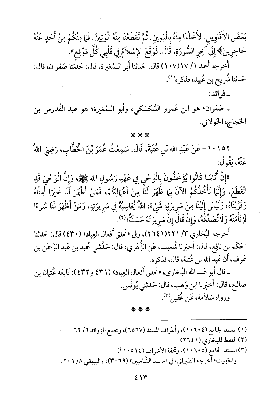 ١٠١٥٢ - عن عبد الله بن عُتبة، قال: سمعت عمر بن الخطاب، رضي الله عنه، يقول: