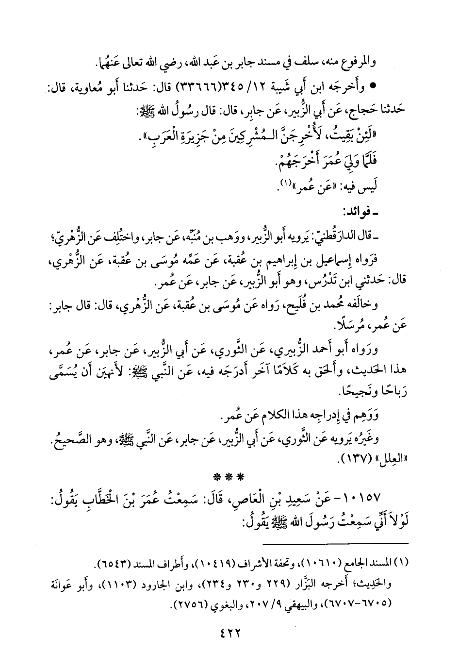 - ذكر: «سمع أباه» مرة واحدة، فصار من رواية عمرو بن سعيد، عن أمير المؤمنين عمر بن الخطاب (¬٣).