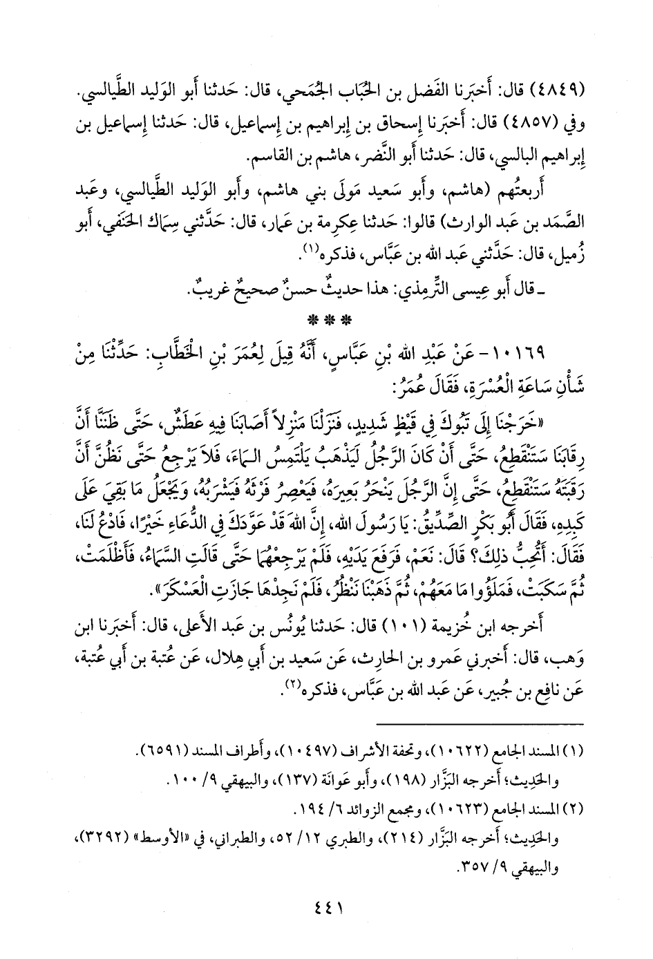 ١٠١٦٩ - عن عبد الله بن عباس، أنه قيل لعمر بن الخطاب: حدثنا من شأن ساعة العسرة، فقال عمر: