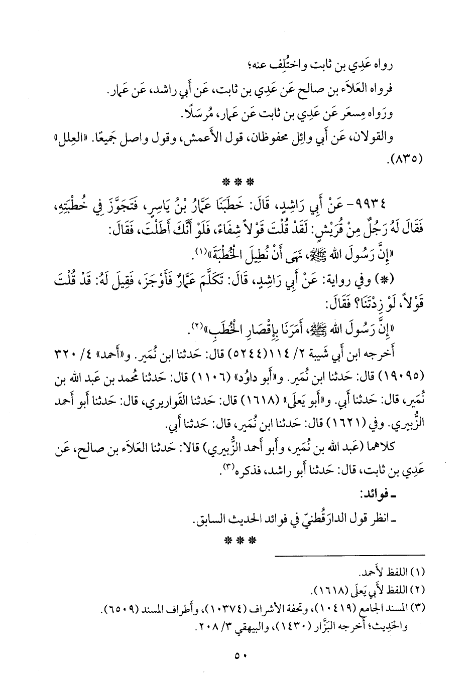 كلاهما (عبد الله بن نُمير، وأَبو أحمد الزُّبَيري) عن العلاء بن صالح، عن عَدي بن ثابت، قال: حدثنا أَبو راشد، فذكره (¬٣).