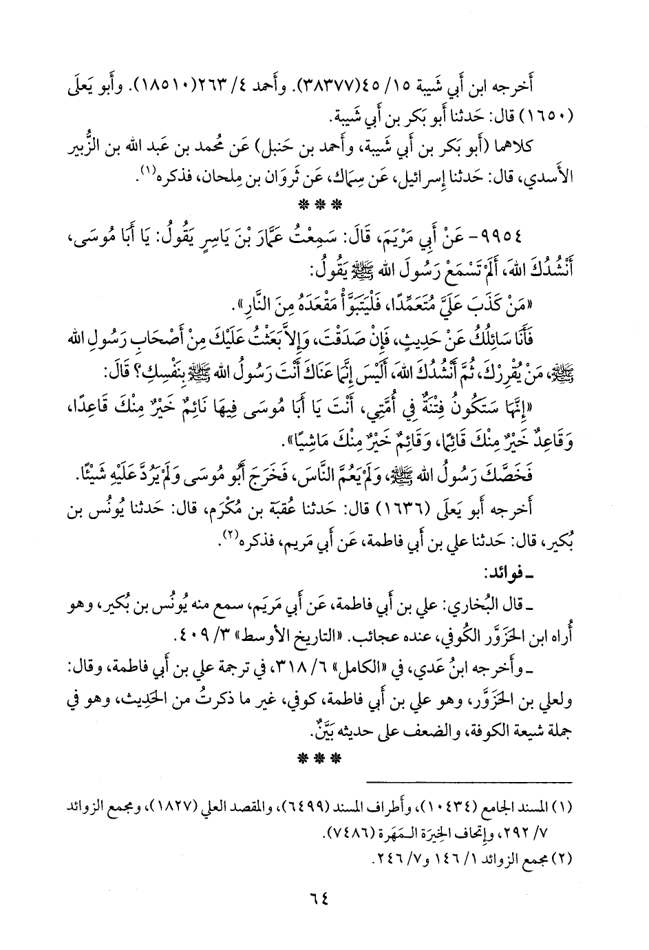 (¬١) مَجمَع الزوائد ١/ ١٤٦ و ٧/ ٢٤٦.