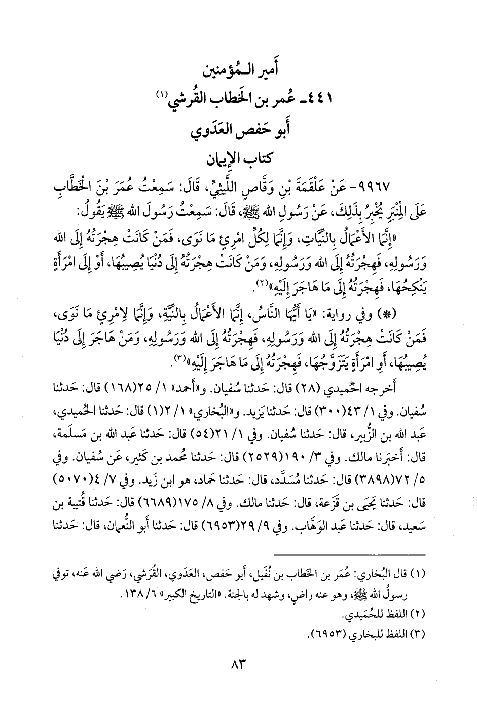 أخرجه الحُميدي (٢٨) قال: حدثنا سفيان. و «أحمد» (١٦٨) قال: حدثنا سفيان. وفي ١/ ٤٣ (٣٠٠) قال: حدثنا يزيد. و «البخاري» ١/ ٢ (١) قال: حدثنا الحميدي عبد الله بن الزبير، قال: حدثنا سفيان. وفي ١/ ٢١ (٥٤) قال: حدثنا عبد الله بن مَسلَمة، قال: أخبرنا مالك. وفي ٣/ ١٩٠ (٢٥٢٩) قال: حدثنا محمد بن كثير، عن سفيان. وفي ٥/ ٧٢ (٣٨٩٨) قال: حدثنا مُسدد، قال: حدثنا حماد، هو ابن زيد.
