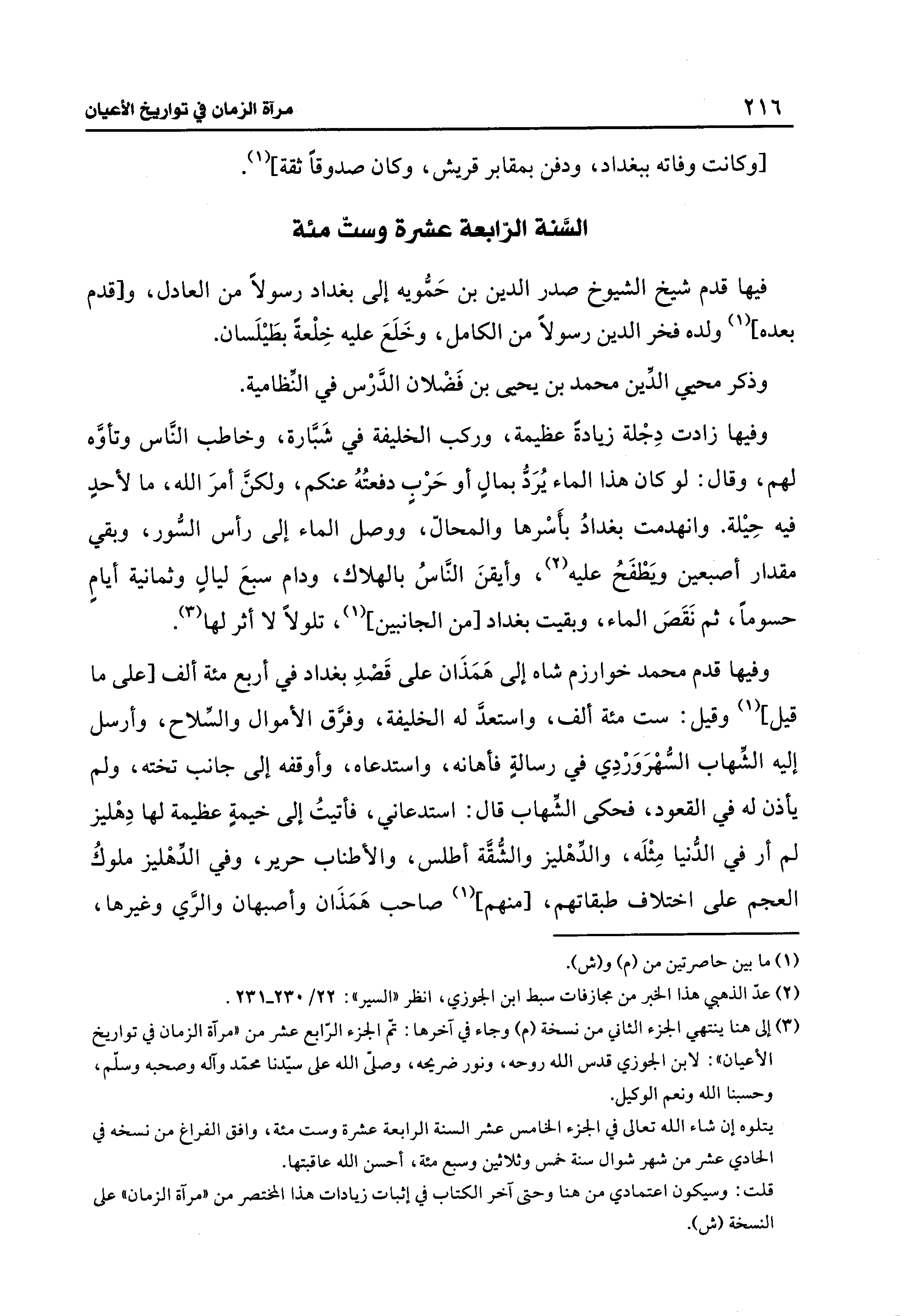 قلت: وسيكون اعتمادي من هنا وحتى آخر الكتاب في إثبات زيادات هذا المختصر من "مرآة الزمان" على النسخة (ش).