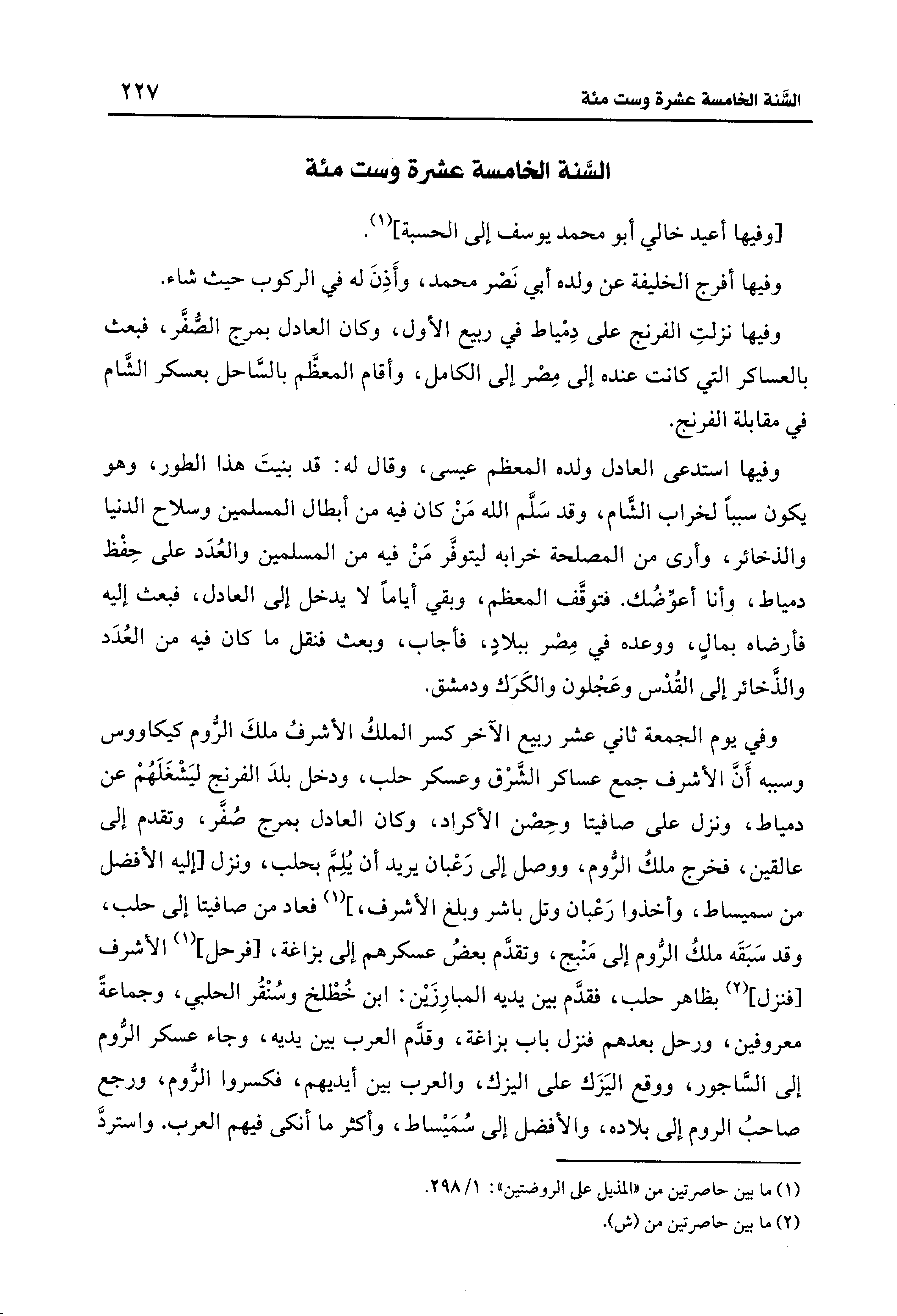 (¬1) ما بين حاصرتين من "المذيل على الروضتين": 1/ 298.