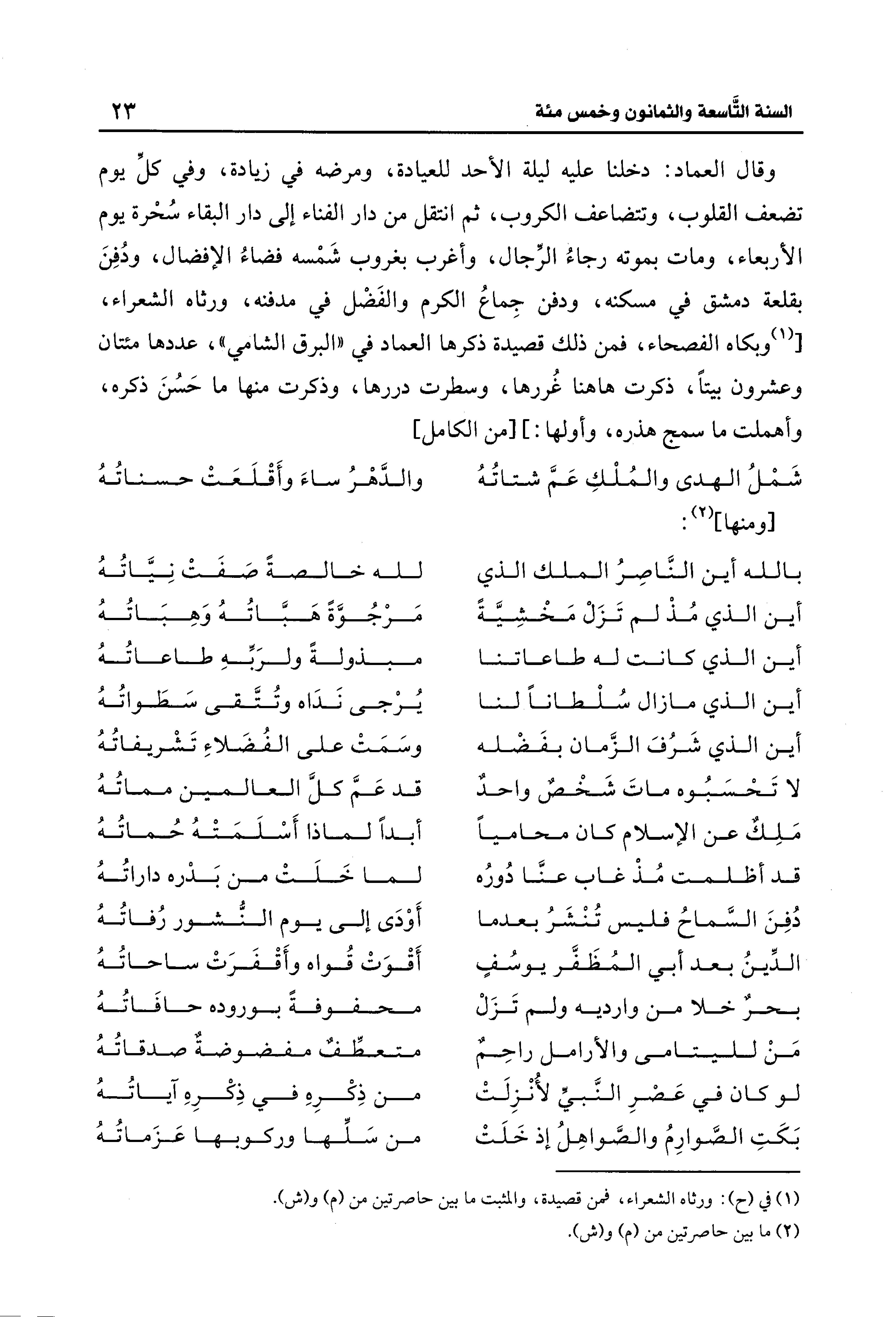 (¬1) في (ح): ورثاه الشعراء، فمن قصيدة، والمثبت ما بين حاصرتين من (م) و (ش).