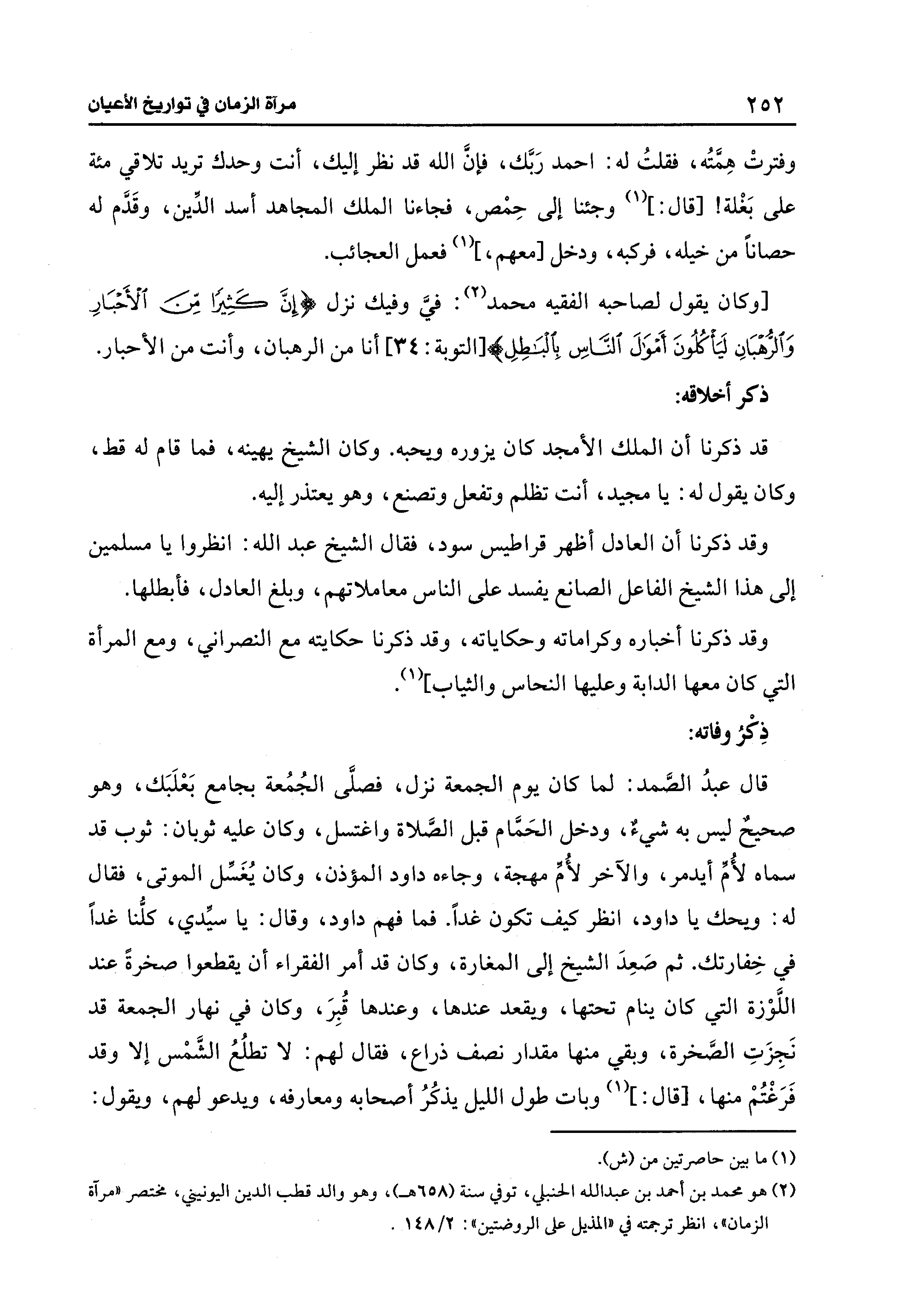 (¬2) هو محمَّد بن أَحْمد بن عبد الله الحنبلي، تُوفِّي سنة (658 هـ)، وهو والد قطب الدين اليونيني، مختصر "مرآة الزمان"، انظر ترجمته في "المذيل على الروضتين": 2/ 148.