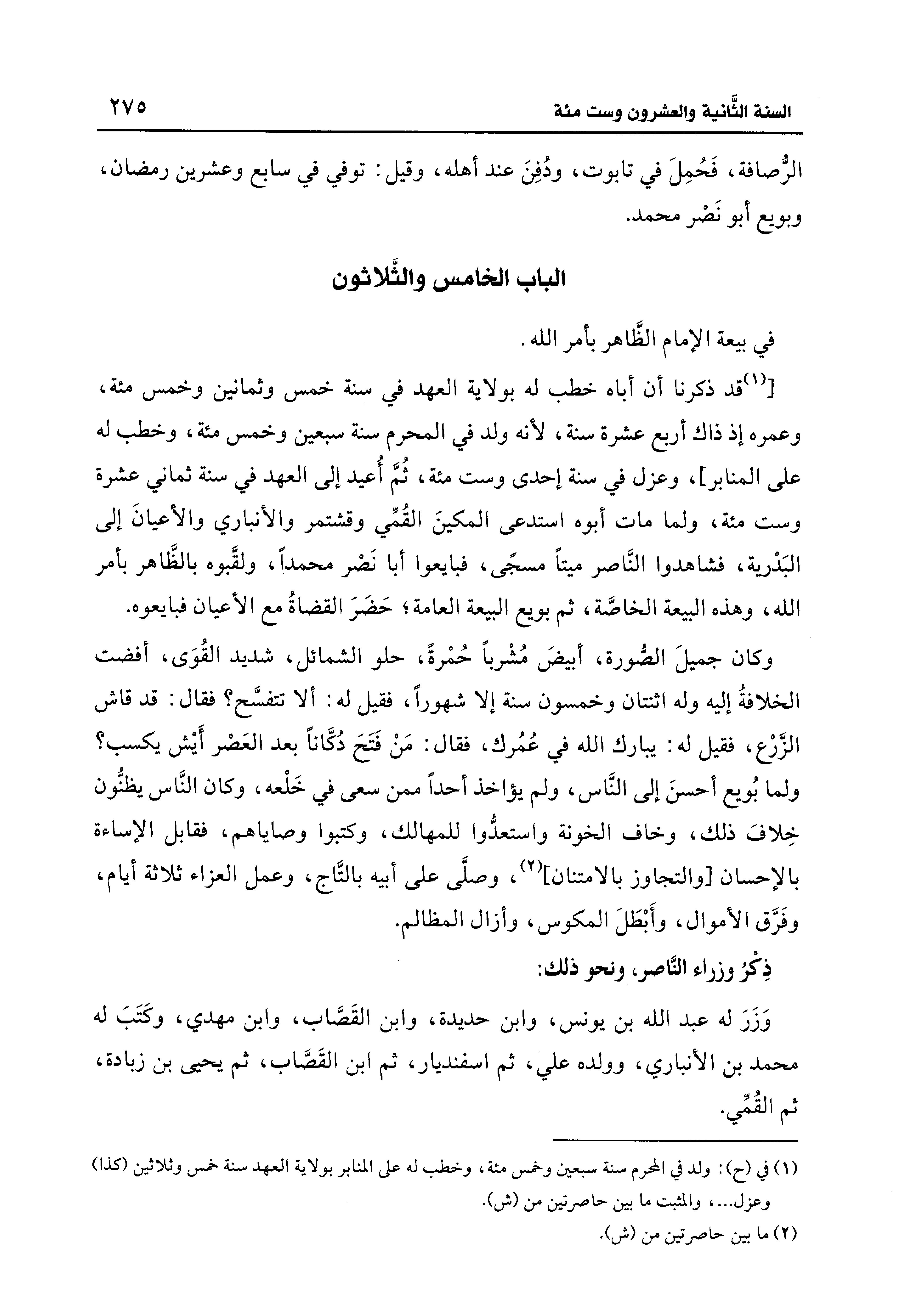 في بيعة الإِمام الظَّاهر بأمر الله.