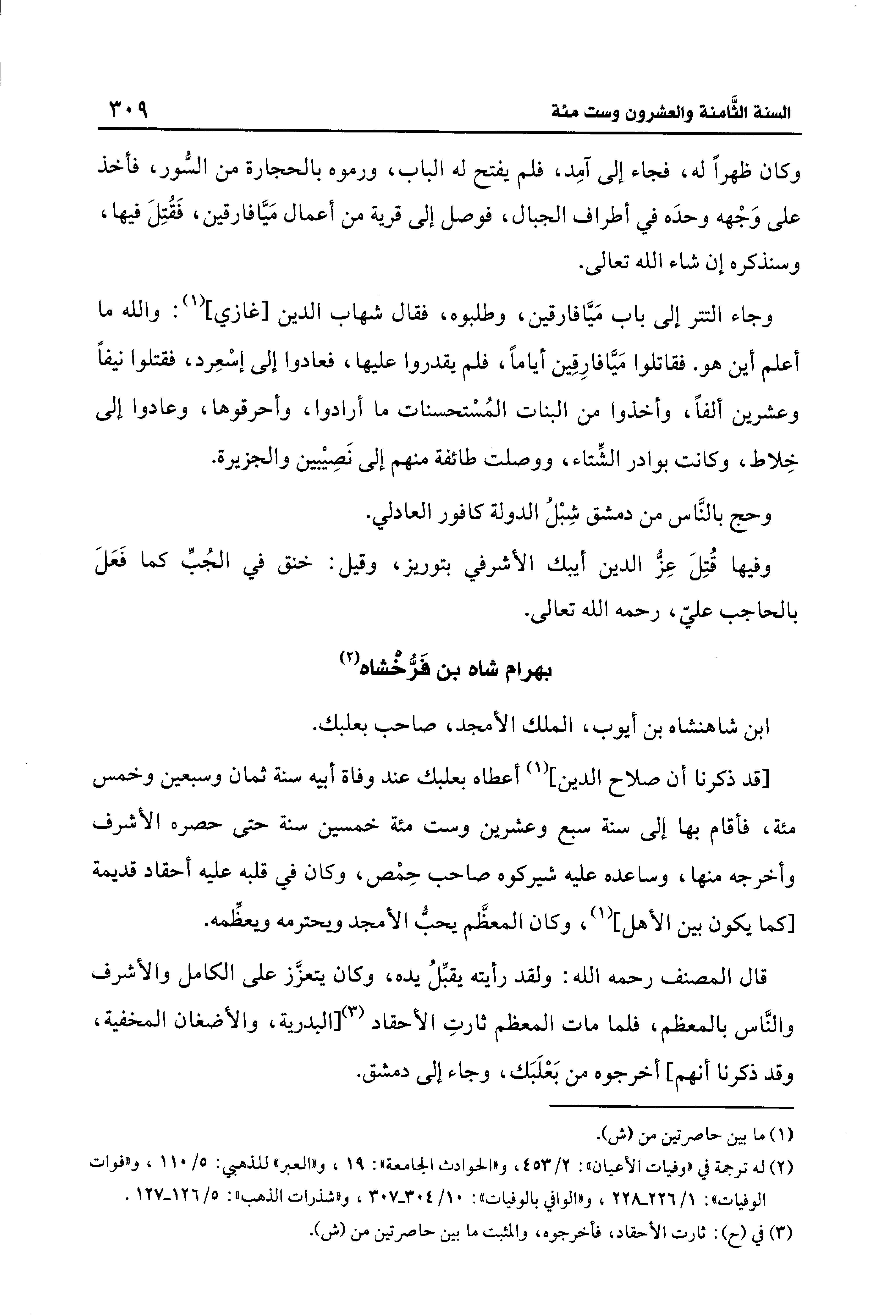 قال المصنف رحمه الله: ولقد رأيته يقبِّلُ يده، وكان يتعزَّز على الكامل والأشرف والنَّاس بالمعظم، فلما مات المعظم ثارتِ الأحقاد (¬3) [البدرية، والأضغان المخفية، وقد ذكرنا أنهم] أخرجوه من بَعْلَبَك، وجاء إلى دمشق.