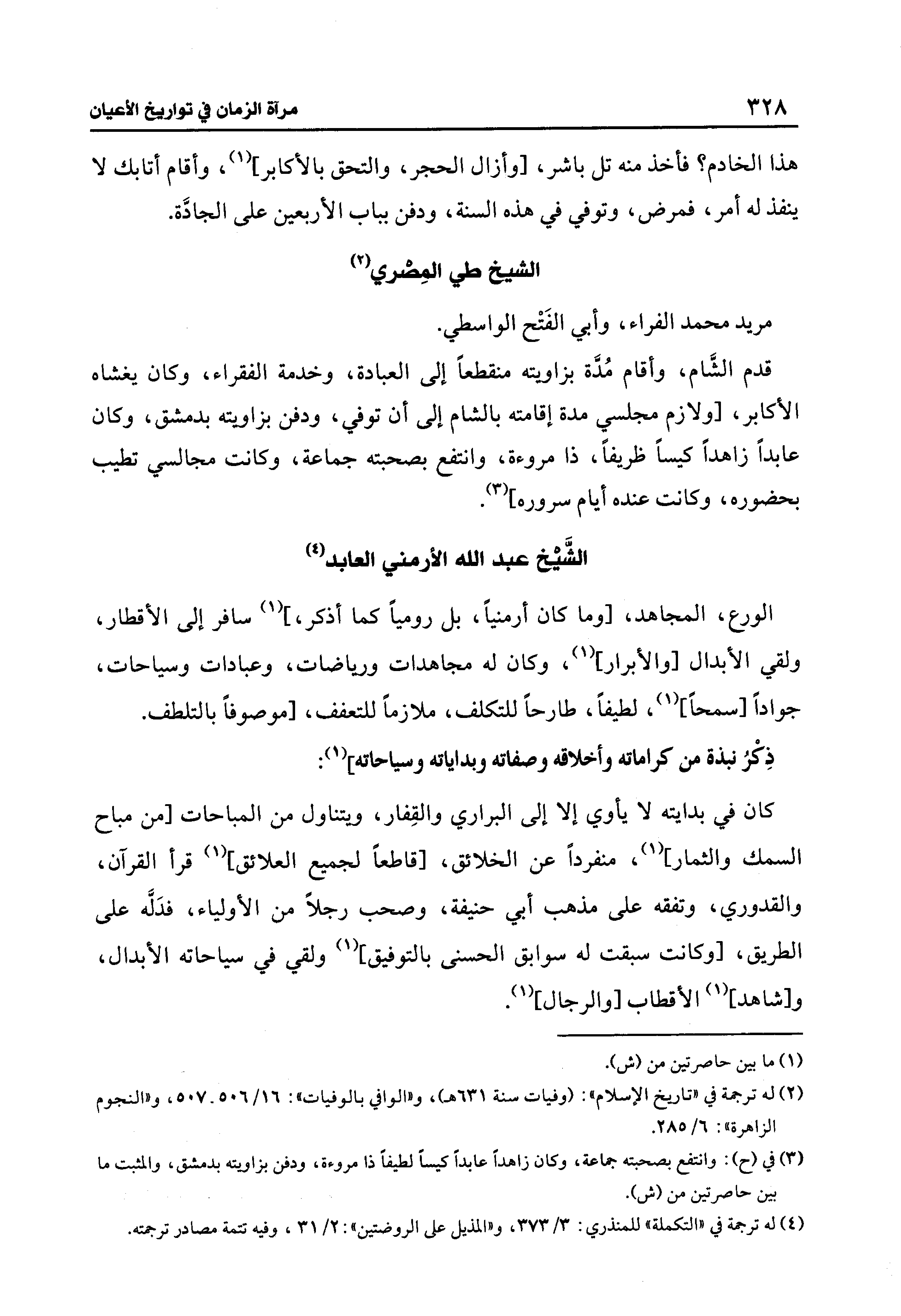 الورع، المجاهد، [وما كان أرمنيًّا، بل روميًّا كما أذكر، ] (1) سافر إلى الأقطار، ولقي الأبدال [والأبرار] (1)، وكان له مجاهدات ورياضات، وعبادات وسياحات، جوادًا [سمحًا] (1)، لطيفًا، طارحًا للتكلف، ملازمًا للتعفف، [موصوفًا بالتلطف.