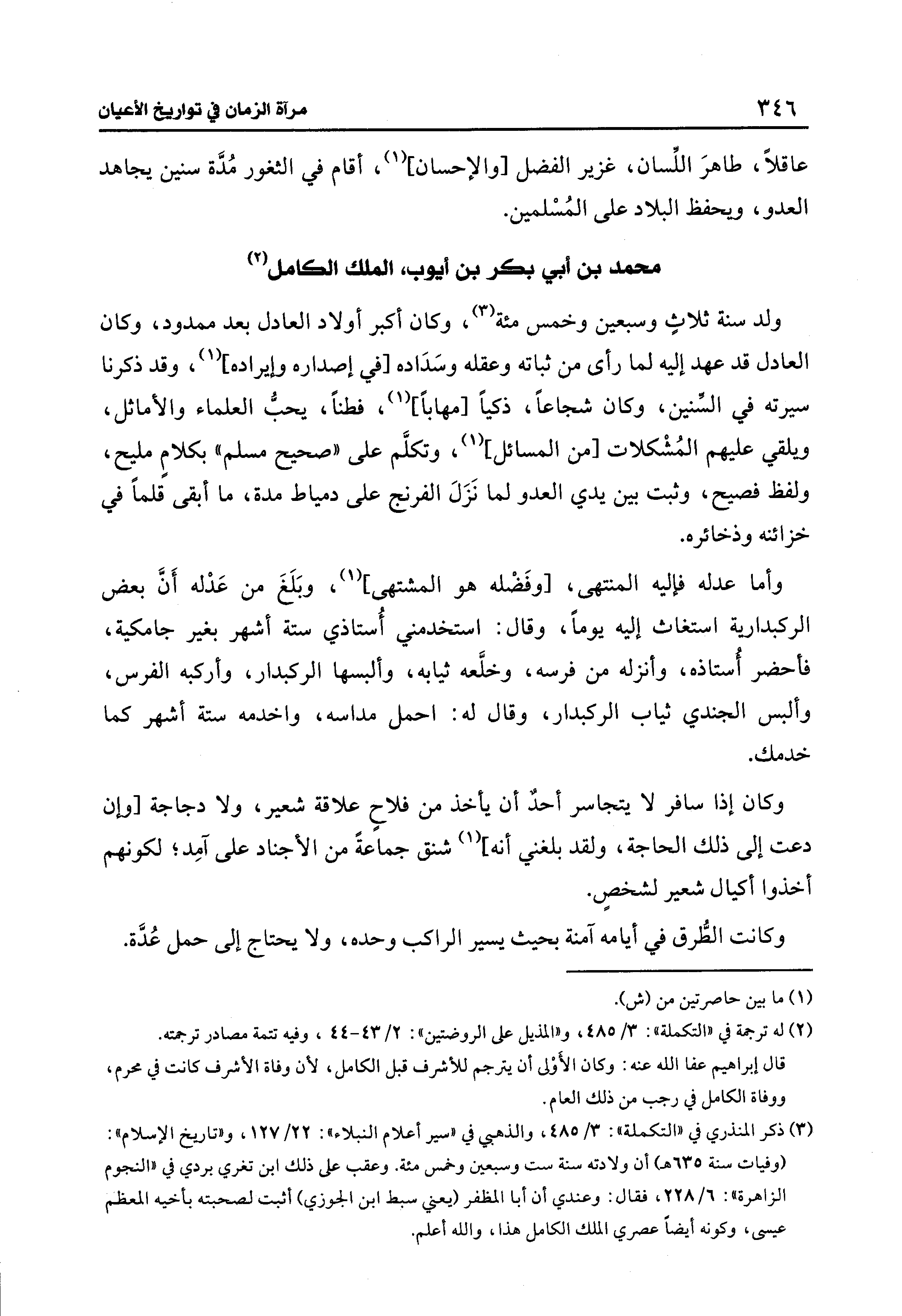 (¬3) ذكر المنذري فِي "التكملة": 3/ 485، والذهبي فِي "سير أعلام النبلاء": 22/ 127، و"تاريخ الإِسلام": (وفيات سنة 635 هـ) أن ولادته سنة ست وسبعين وخمس مئة. وعقب على ذلك ابن تغري بردي فِي "النجوم الزاهرة": 6/ 228، فقال: وعندي أن أَبا المظفر (يعني سبط ابن الجوزي) أثبت لصحبته بأخيه المعظم عيسى، وكونه أَيضًا عصري الملك الكامل هذا، والله أعلم.