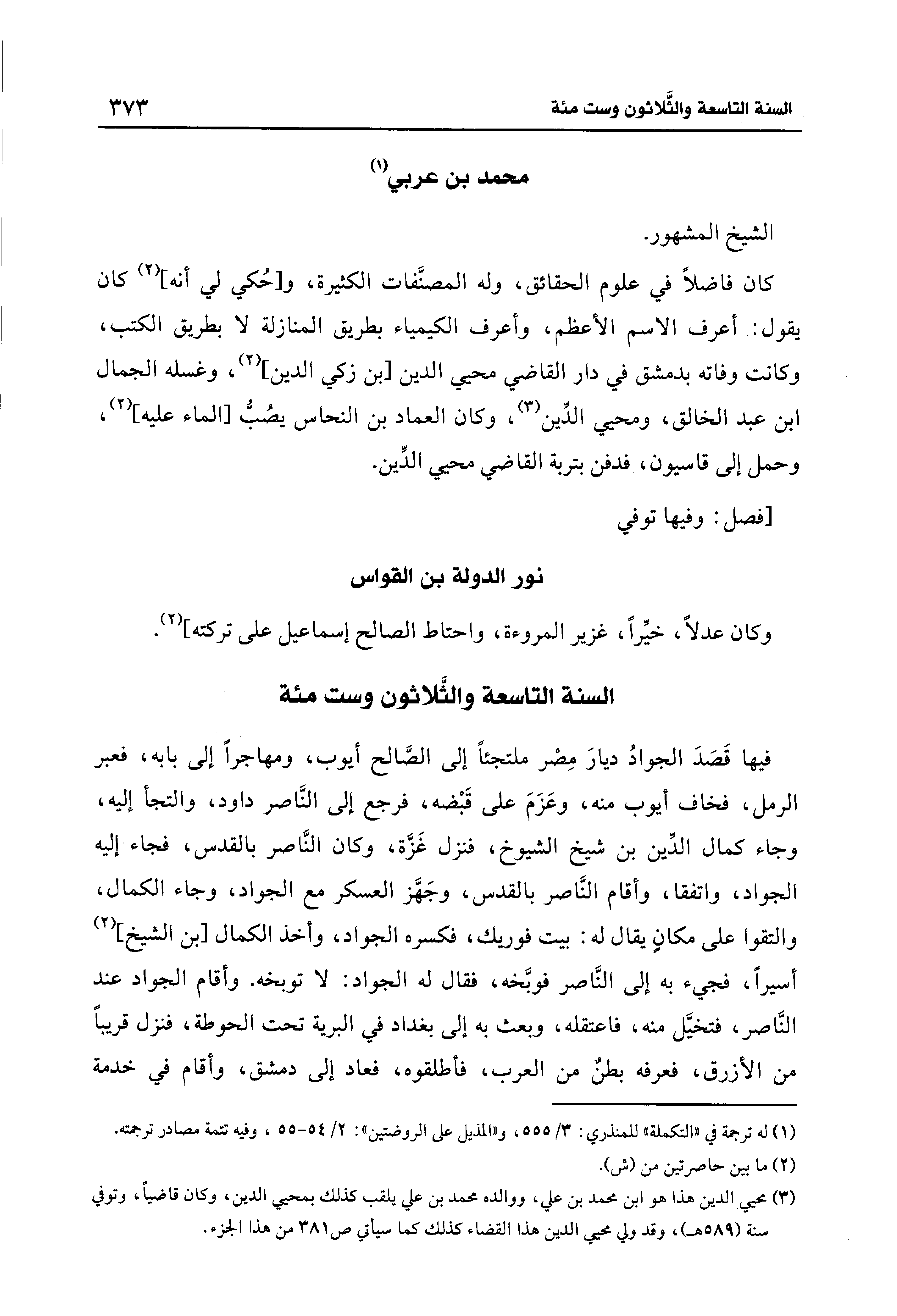 (¬3) محيي الدين هذا هو ابن محمَّد بن عليّ، ووالده محمَّد بن عليّ يلقب كذلك بمحيي الدين، وكان قاضيًا، وتوفي سنة (589 هـ)، وقد ولي محيي الدين هذا القضاء كذلك كما سيأتي ص 381 من هذا الجزء.