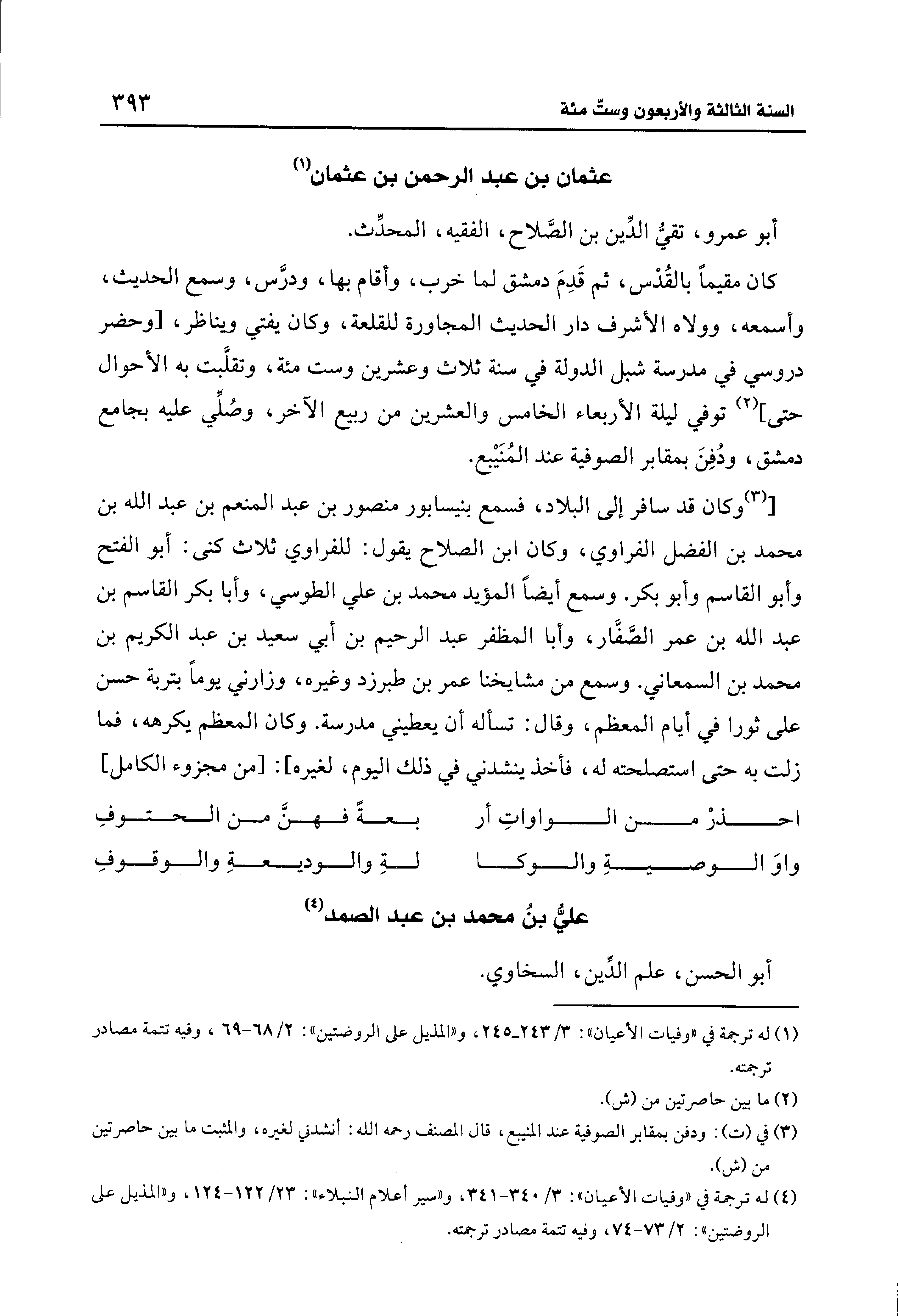 (¬4) له ترجمة في "وفيات الأعيان": 3/ 340 - 341، و"سير أعلام النبلاء": 23/ 122 - 124، و"المذيل على الروضتين": 2/ 73 - 74، وفيه تتمة مصادر ترجمته.