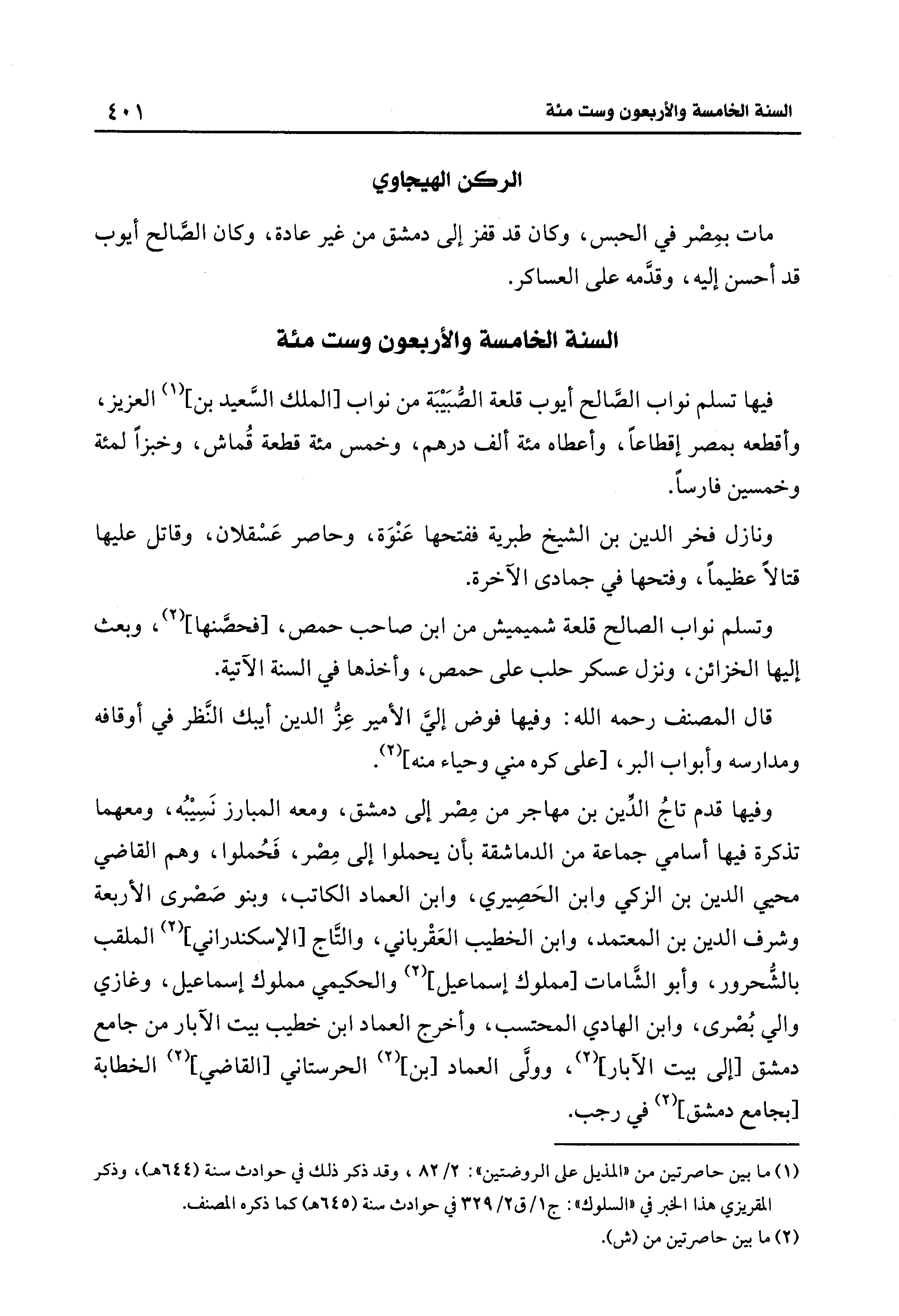 (¬1) ما بين حاصرتين من "المذيل على الروضتين": 2/ 82، وقد ذكر ذلك في حوادث سنة (644 هـ)، وذكر المقريزي هذا الخبر في "السلوك": ج 1 / ق 2/ 329 في حوادث سنة (645 هـ) كما ذكره المصنف.