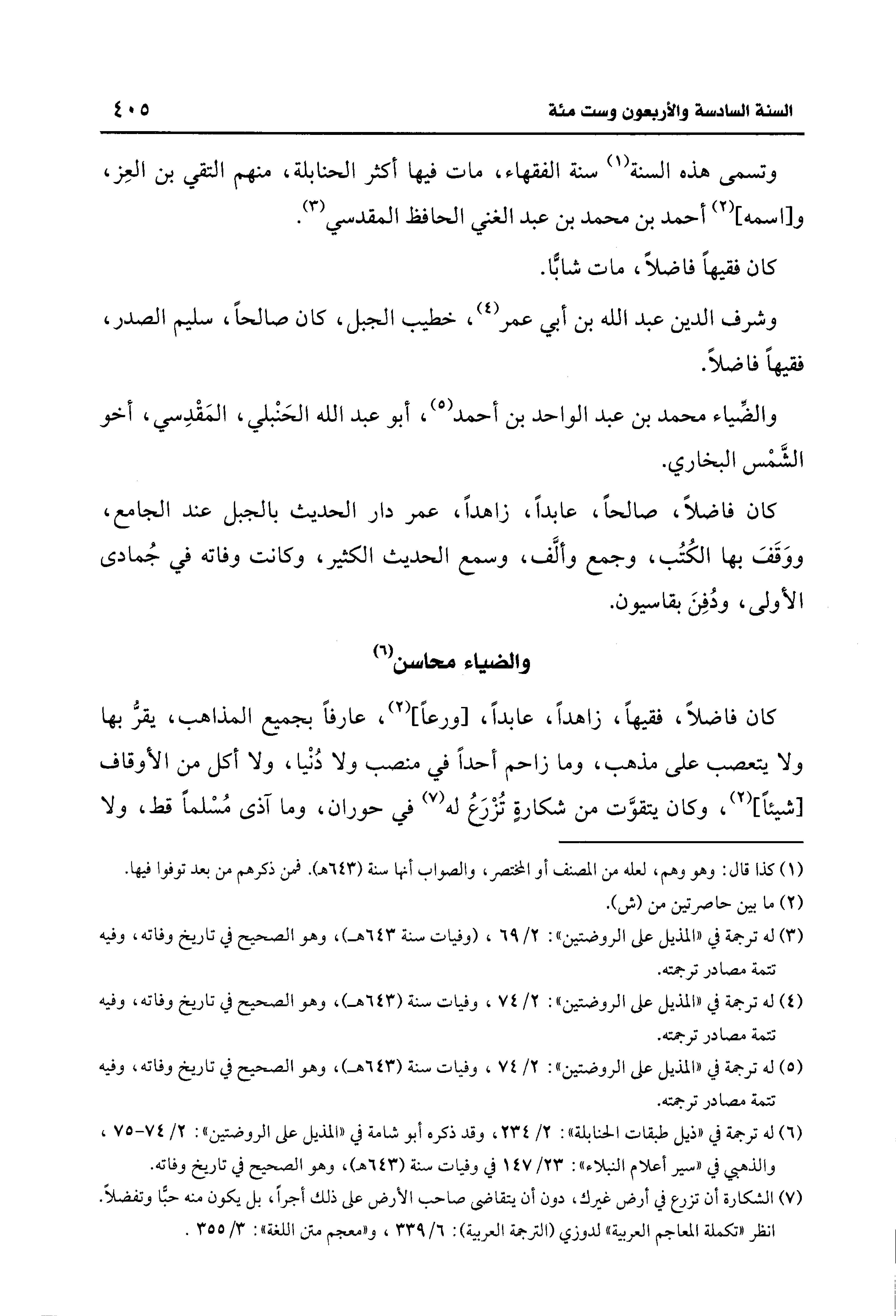 (¬1) كذا قال: وهو وهم، لعله من المصنف أو المختصر، والصواب أنها سنة (643 هـ). فن ذكرهم من بعد توفوا فيها.
