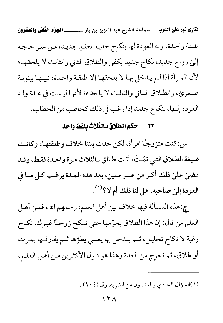 (¬1) السؤال الحادي والعشرون من الشريط رقم (104).