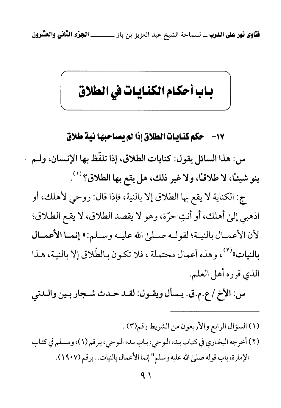 17 - حكم كنايات الطلاق إذا لم يصاحبها نية طلاق