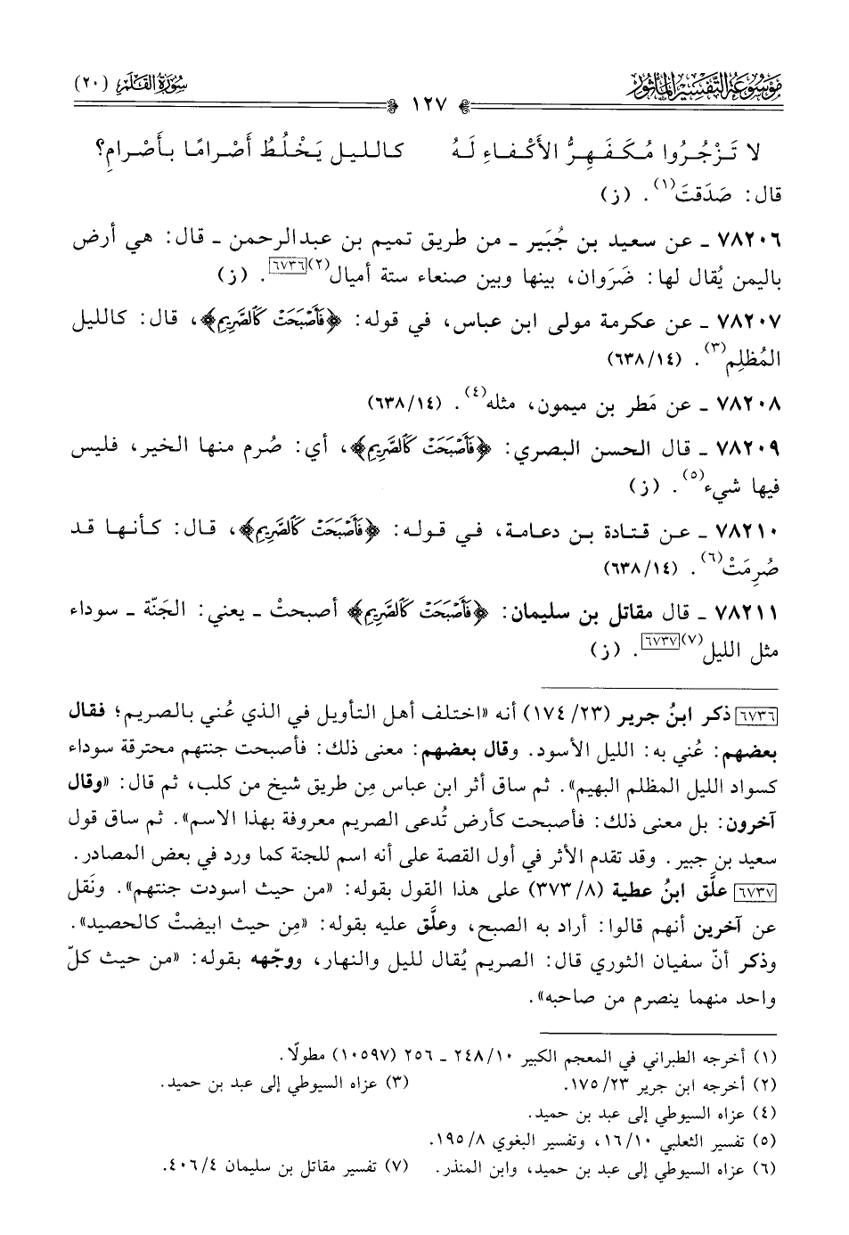 ٧٨٢٠٧ - عن عكرمة مولى ابن عباس، في قوله: {فَأَصْبَحَتْ كالصَّرِيمِ}، قال: كالليل المُظلِم (¬٣). (١٤/ ٦٣٨)