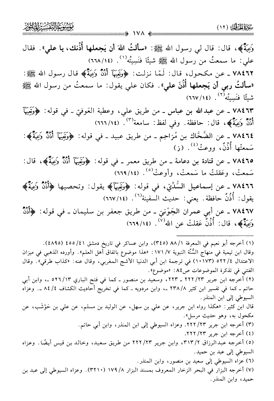 ٧٨٤٦٦ - عن إسماعيل السُّدِّيّ، في قوله: {وتَعِيَها} يقول: وتحصيها {أُذُنٌ واعِيَةٌ} يقول: أُذُنٌ حافظة. يعني: حديث السفينة (¬٦). (١٤/ ٦٦٧)