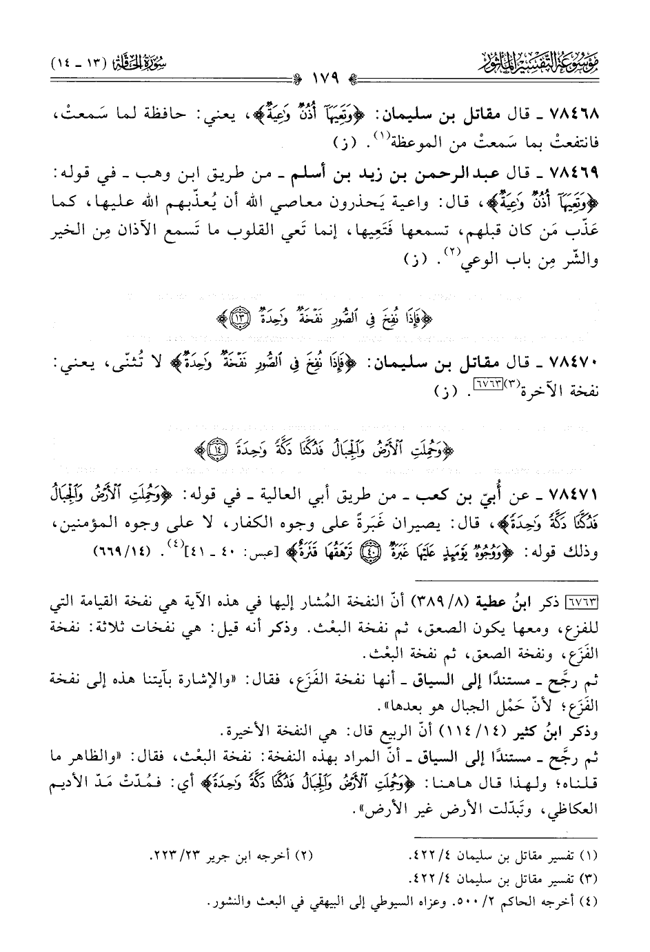 ٧٨٤٧٠ - قال مقاتل بن سليمان: {فَإذا نُفِخَ فِي الصُّورِ نَفْخَةٌ واحِدَةٌ} لا تُثنّى، يعني: نفخة الآخرة (¬٣) [٦٧٦٣]. (ز)