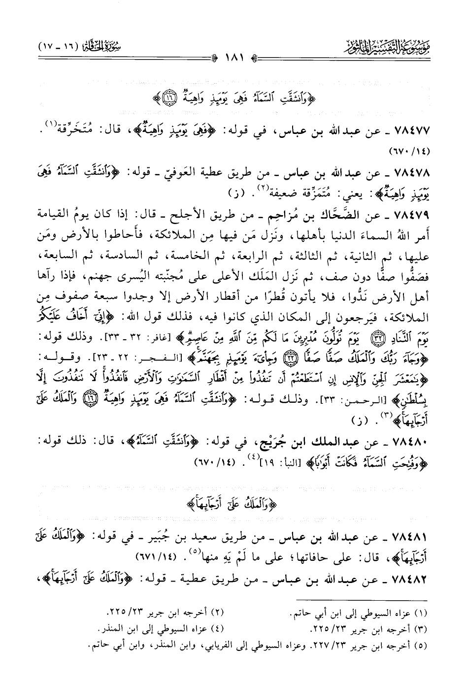 ٧٨٤٨٢ - عن عبد الله بن عباس -من طريق عطية- قوله: {والمَلَكُ عَلى أرْجائِها}،