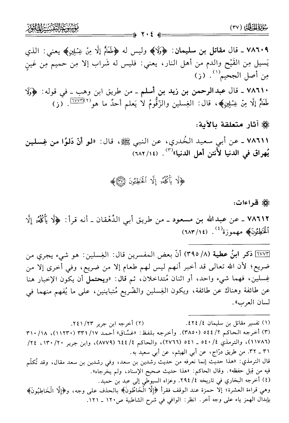 ٧٨٦١٢ - عن عبد الله بن مسعود -من طريق أبي الدِّهْقان- أنه قرأ: {لا يَأْكُلُهُ إلّا الخاطِئُونَ} مهموزة (¬٤). (١٤/ ٦٨٣)
