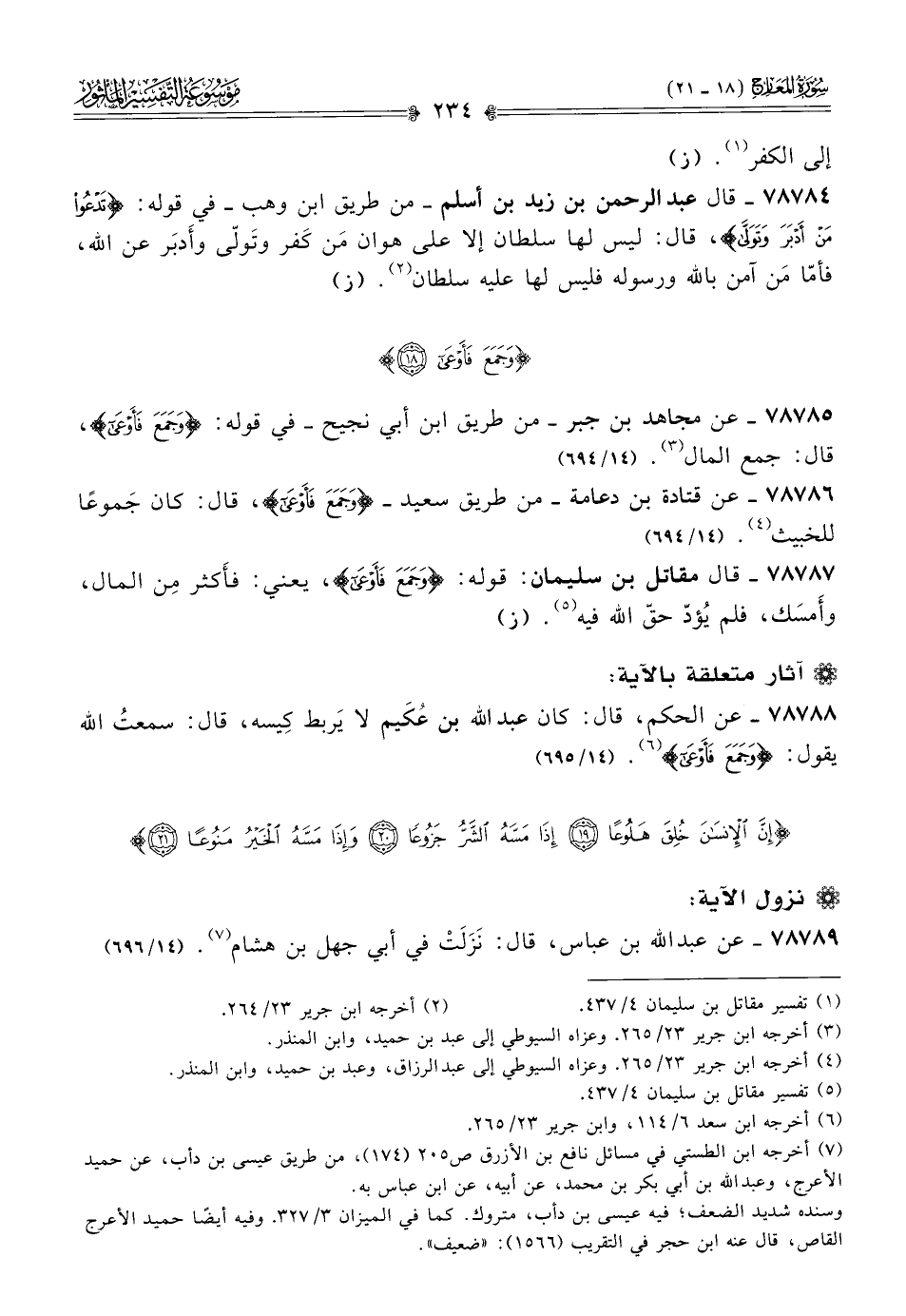 ٧٨٧٨٥ - عن مجاهد بن جبر -من طريق ابن أبي نجيح- في قوله: {وجَمَعَ فَأَوْعى}، قال: جمع المال (¬٣). (١٤/ ٦٩٤)