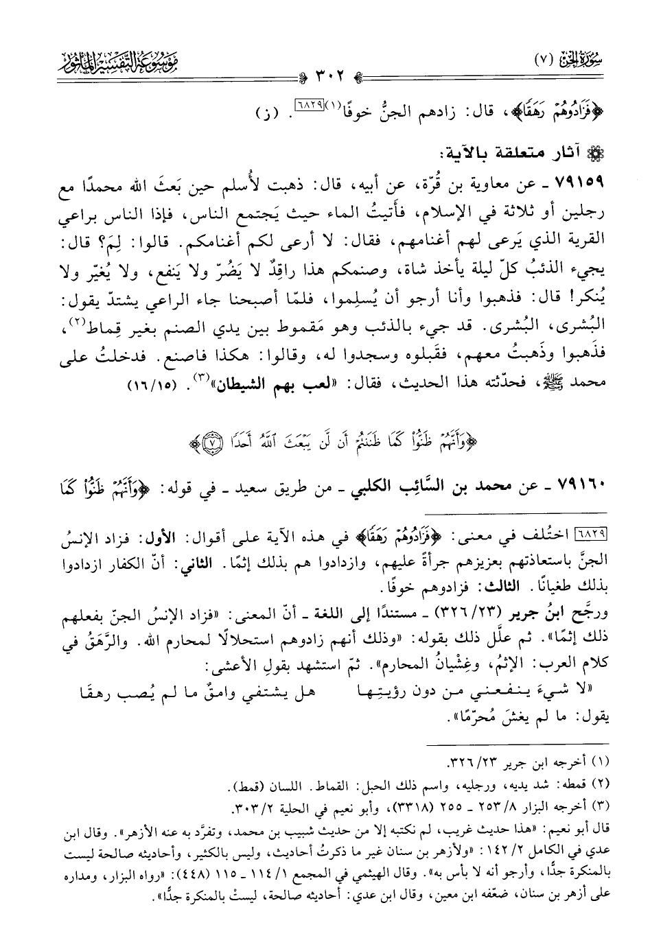 {فَزادُوهُمْ رَهَقًا}، قال: زادهم الجنُّ خوفًا (¬١) [٦٨٢٩]. (ز)