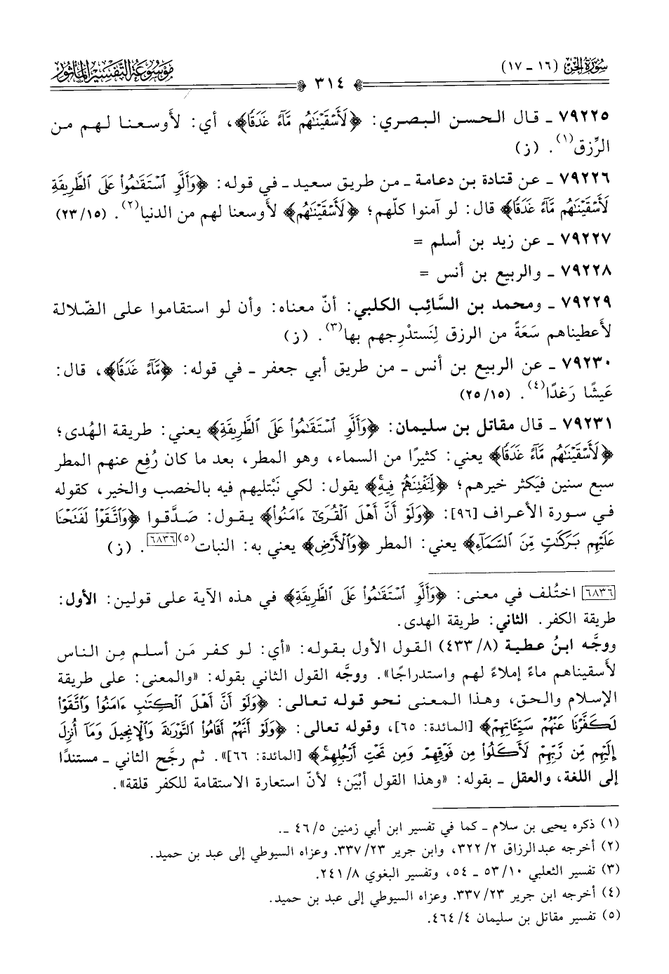 ٧٩٢٢٩ - ومحمد بن السّائِب الكلبي: أنّ معناه: وأن لو استقاموا على الضّلالة لأَعطيناهم سَعَةً من الرزق لِنَستدْرِجهم بها (¬٣). (ز)