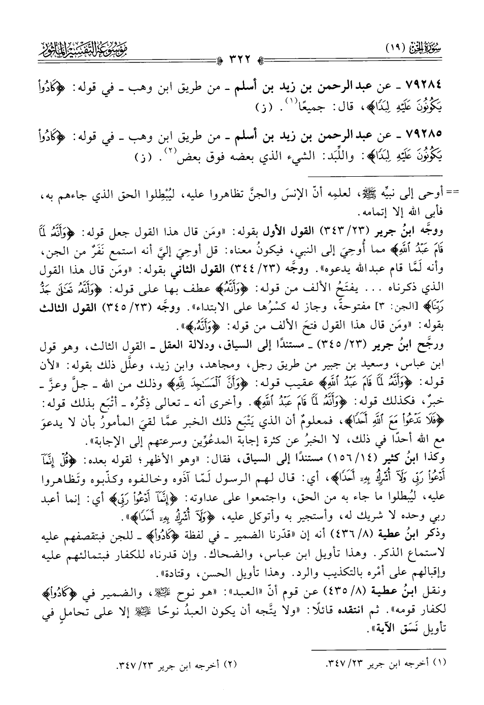 ٧٩٢٨٤ - عن عبد الرحمن بن زيد بن أسلم -من طريق ابن وهب- في قوله: {كادُوا يَكُونُونَ عَلَيْهِ لِبَدًا}، قال: جميعًا (¬١). (ز)