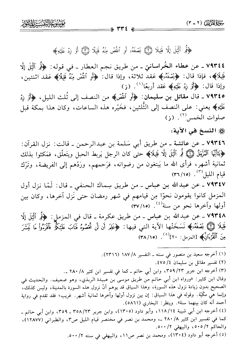 (¬٤) أخرجه ابن أبي شيبة ١٤/ ١١٨، وأبو داود (١٣٠٥)، وابن جرير ٢٣/ ٣٥٨ - ٣٥٩، وابن أبي حاتم -كما في تفسير ابن كثير ٨/ ٢٨٠ - ، ومحمد بن نصر في مختصر قيام الليل ص ٣، والطبراني (١٢٨٧٧)، والحاكم ٢/ ٥٠٥، والبيهقي ٢/ ٥٠٠.