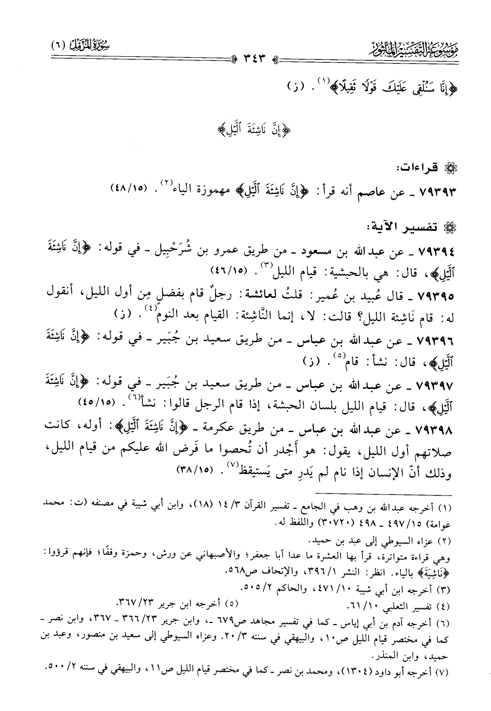 ٧٩٣٩٤ - عن عبد الله بن مسعود -من طريق عمرو بن شُرَحْبِيل- في قوله: {إنَّ ناشِئَةَ اللَّيْلِ}، قال: هي بالحبشية: قيام الليل (¬٣). (١٥/ ٤٦)
