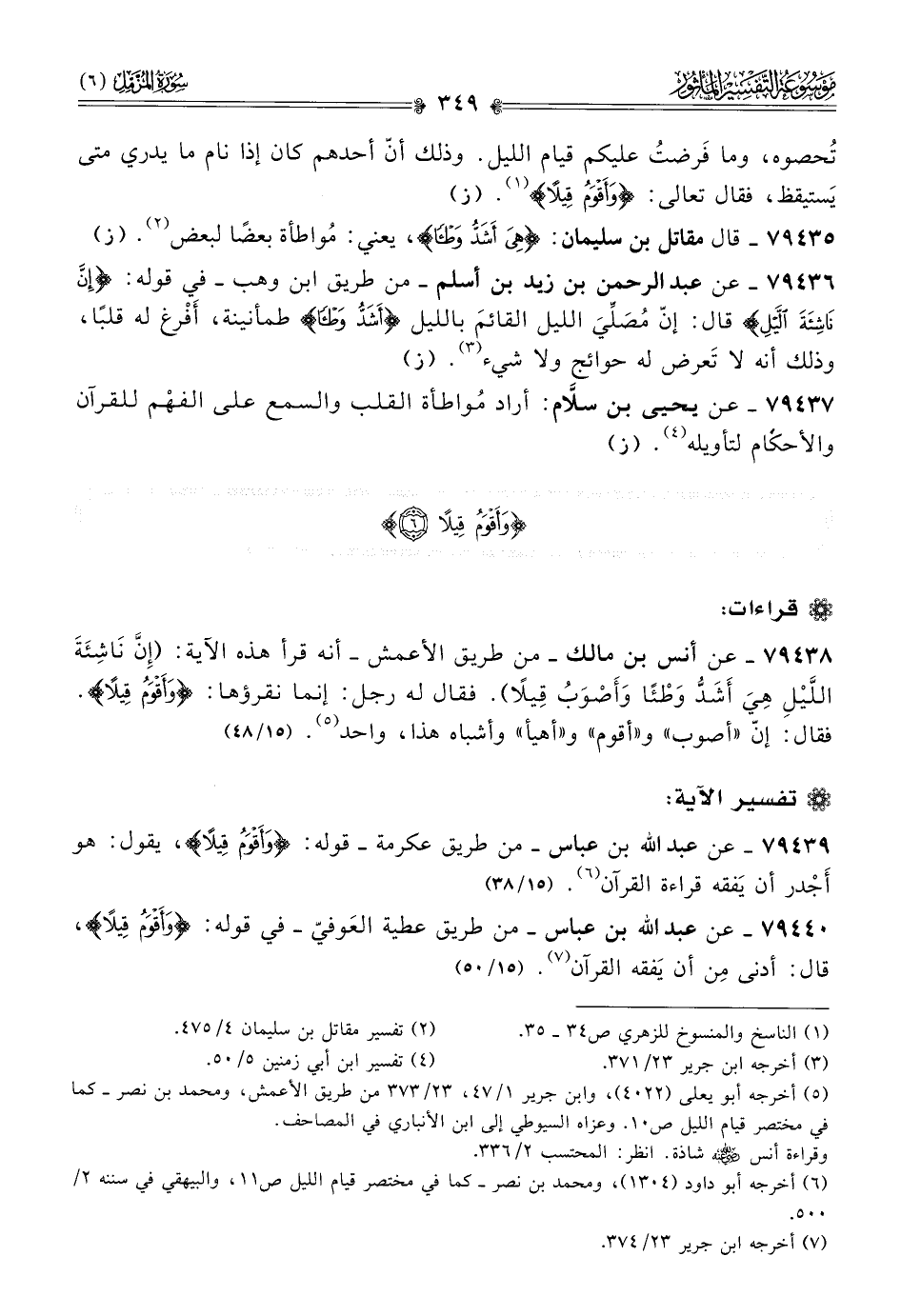 ٧٩٤٣٦ - عن عبد الرحمن بن زيد بن أسلم -من طريق ابن وهب- في قوله: {إنَّ ناشِئَةَ اللَّيْلِ} قال: إنّ مُصَلِّيَ الليل القائمَ بالليل {أشَدُّ وطْئًا} طمأنينة، أفْرغ له قلبًا، وذلك أنه لا تَعرض له حوائج ولا شيء (¬٣). (ز)
