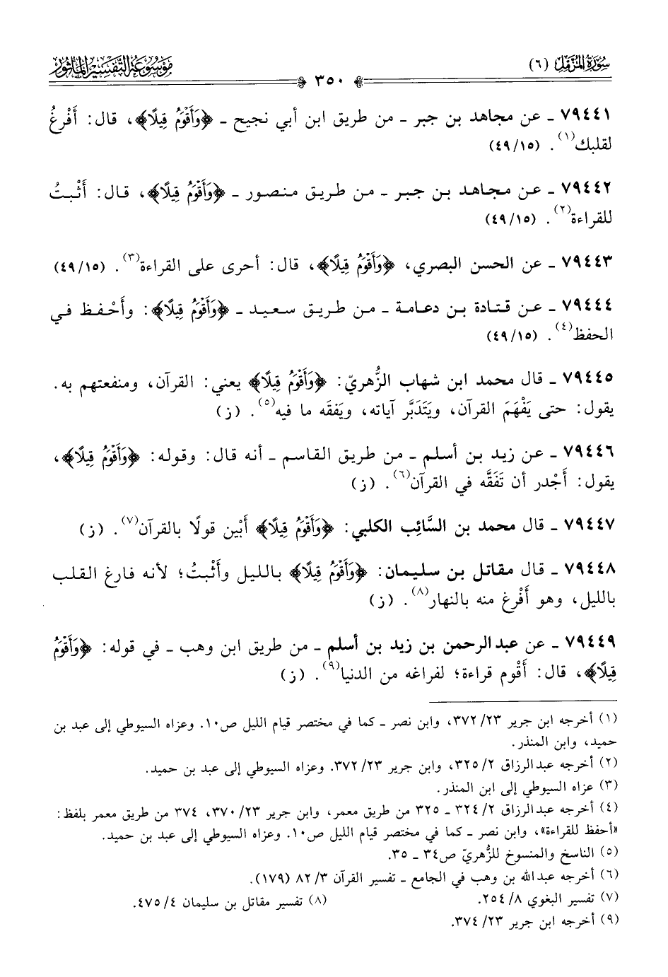 ٧٩٤٤٩ - عن عبد الرحمن بن زيد بن أسلم -من طريق ابن وهب- في قوله: {وأَقْوَمُ قِيلًا}، قال: أقْوم قراءة؛ لفراغه من الدنيا (¬٩). (ز)