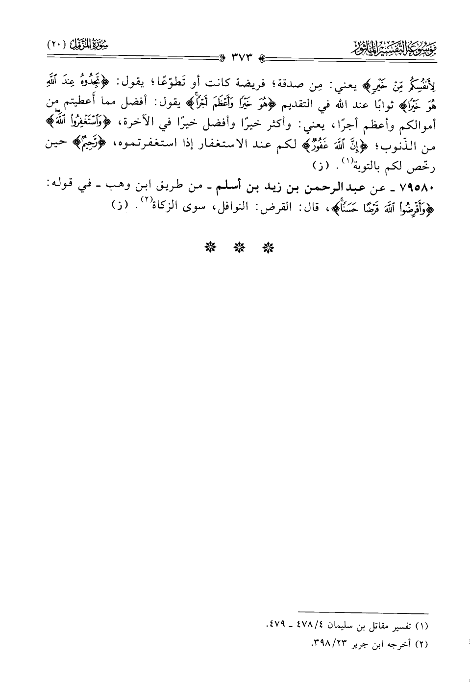 ٧٩٥٨٠ - عن عبد الرحمن بن زيد بن أسلم -من طريق ابن وهب- في قوله: {وأَقْرِضُوا اللَّهَ قَرْضًا حَسَنًا}، قال: القرض: النوافل، سوى الزكاة (¬٢). (ز)