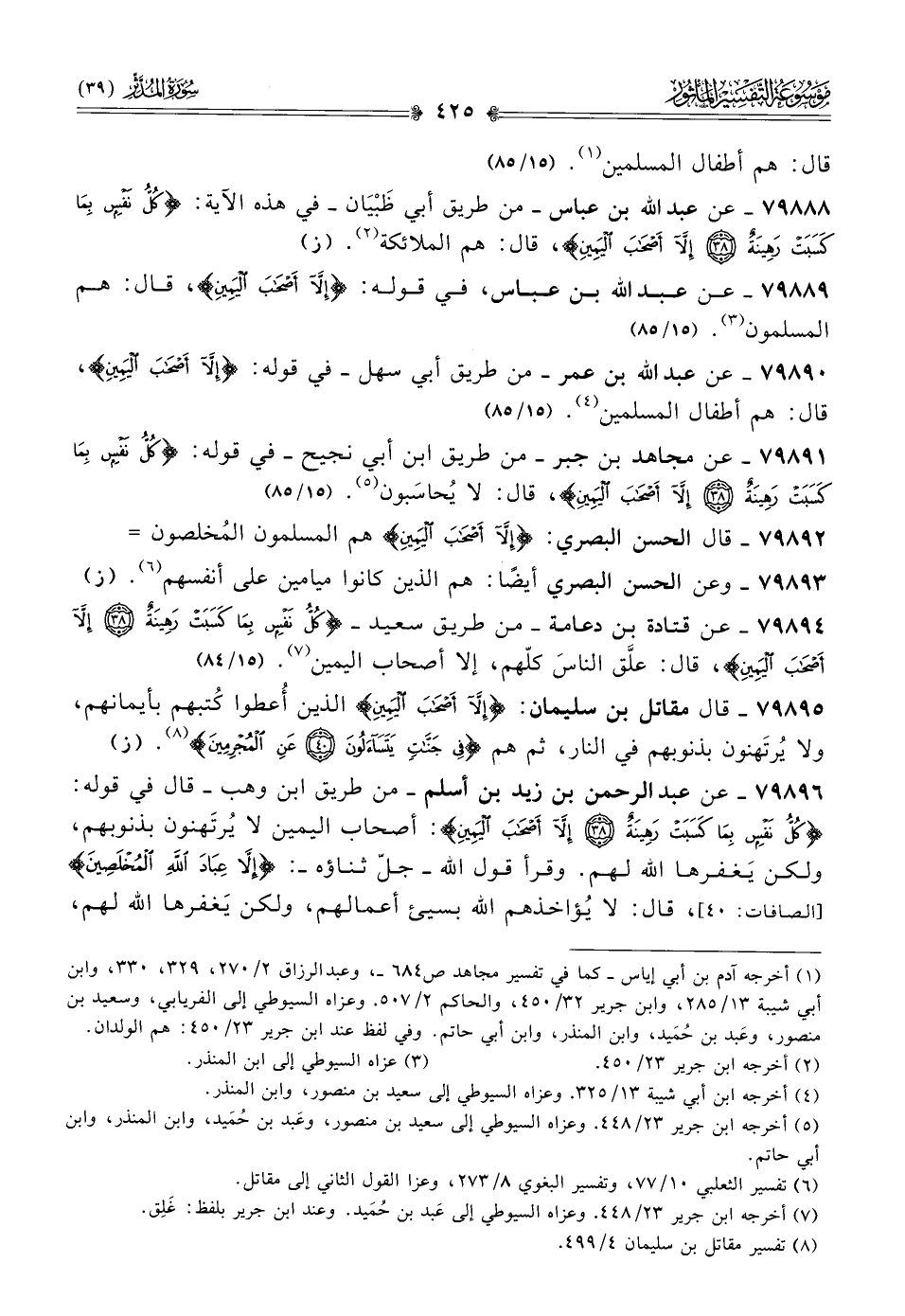 ٧٩٨٨٩ - عن عبد الله بن عباس، في قوله: {إلّا أصْحابَ اليَمِينِ}، قال: هم المسلمون (¬٣). (١٥/ ٨٥)