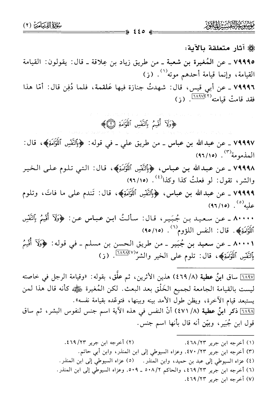 ٨٠٠٠٠ - عن سعيد بن جُبَير، قال: سألتُ ابن عباس عن: {ولا أُقْسِمُ بِالنَّفْسِ اللَّوّامَةِ}. قال: النفس اللؤوم (¬٦). (١٥/ ٩٥)