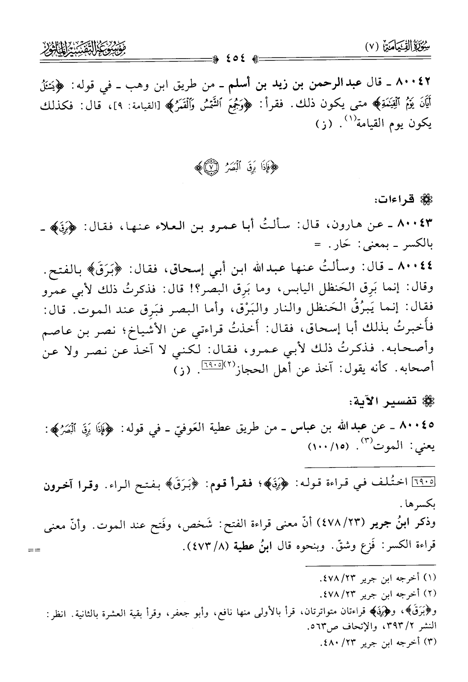٨٠٠٤٥ - عن عبد الله بن عباس -من طريق عطية العَوفيّ- في قوله: {فَإذا بَرِقَ البَصَرُ}: يعني: الموت (¬٣). (١٥/ ١٠٠)