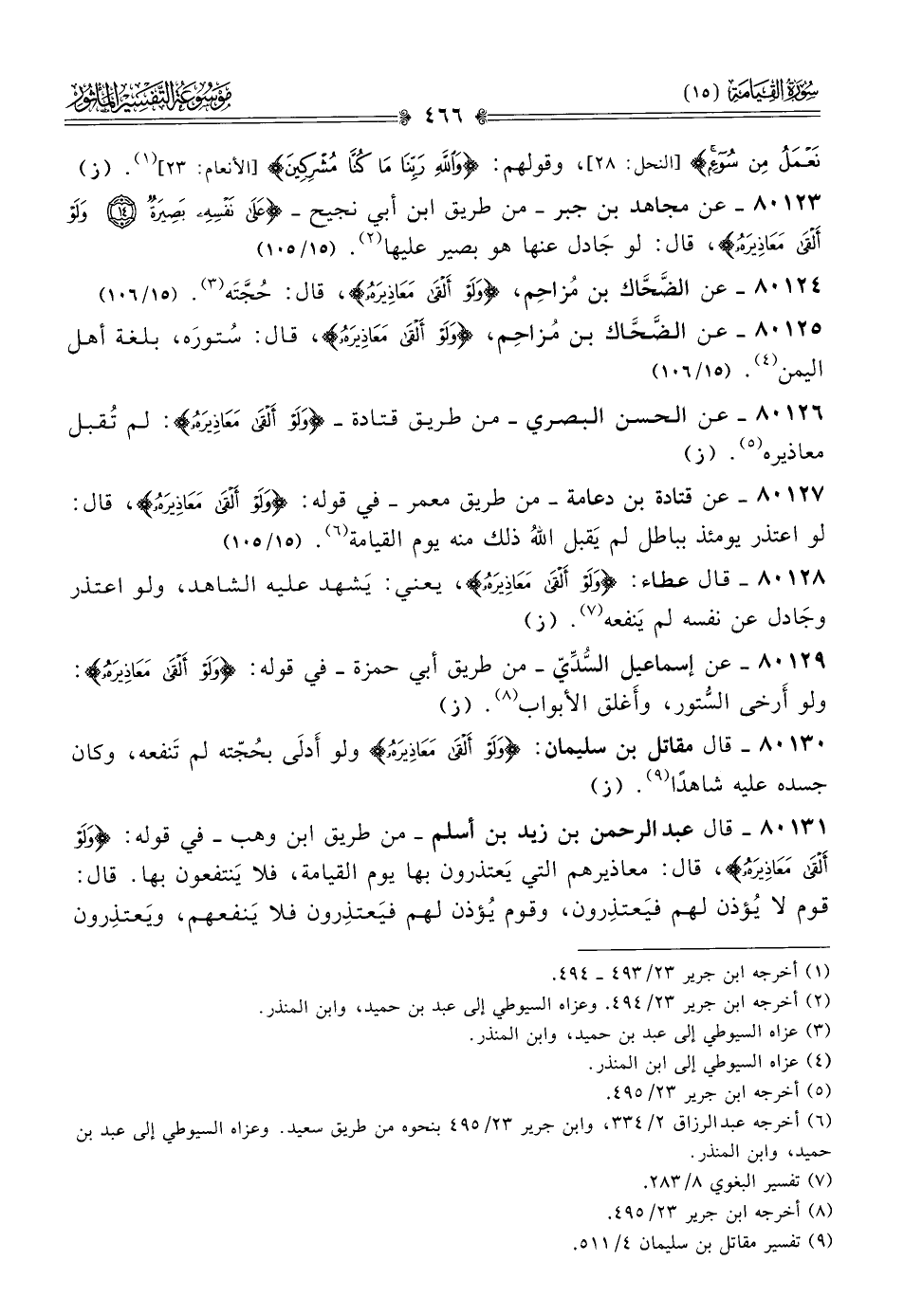 ٨٠١٢٤ - عن الضَّحّاك بن مُزاحِم، {ولَوْ ألْقى مَعاذِيرَهُ}، قال: حُجَّتَه (¬٣). (١٥/ ١٠٦)