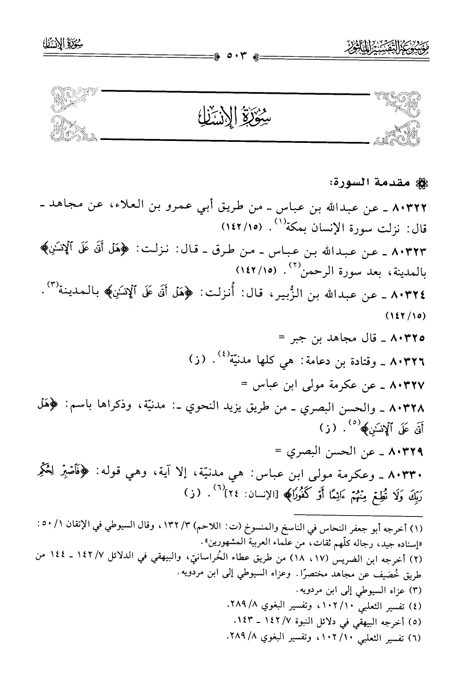 ٨٠٣٢٤ - عن عبد الله بن الزُّبير، قال: أُنزلت: {هَلْ أتى عَلى الإنْسانِ} بالمدينة (¬٣). (١٥/ ١٤٢)