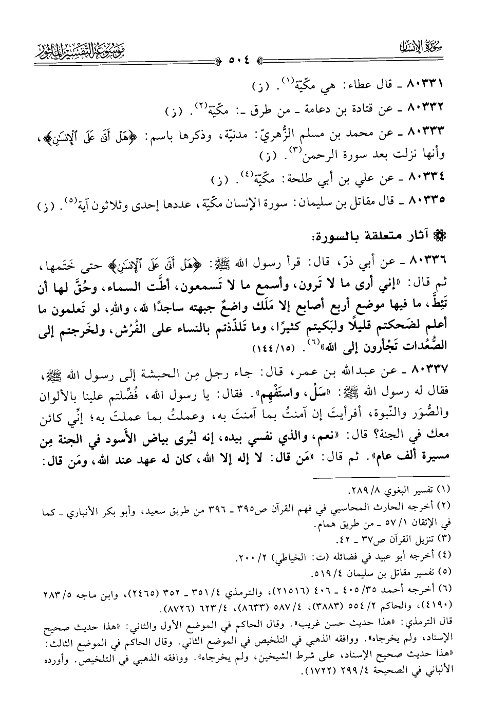 ٨٠٣٣٥ - قال مقاتل بن سليمان: سورة الإنسان مكّيّة، عددها إحدى وثلاثون آية (¬٥). (ز)