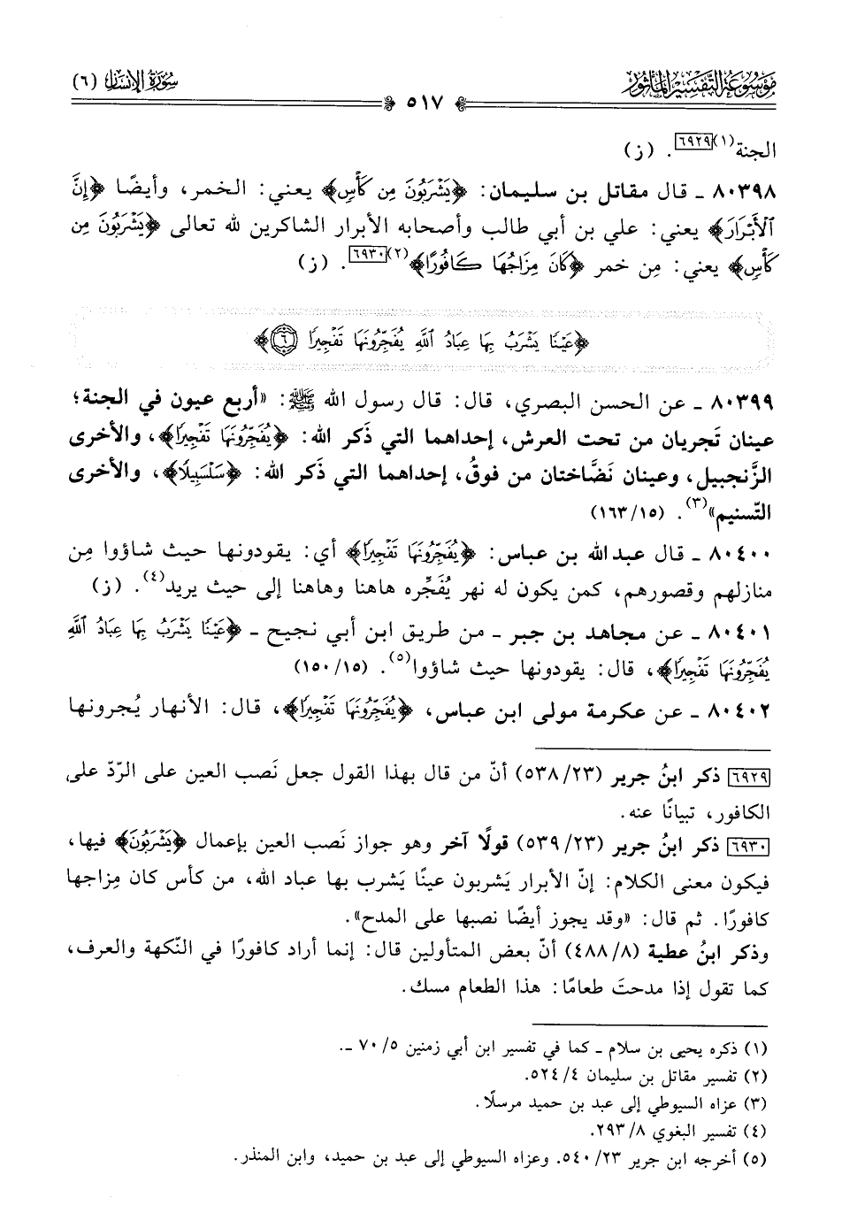٨٠٤٠٢ - عن عكرمة مولى ابن عباس، {يُفَجِّرُونَها تَفْجِيرًا}، قال: الأنهار يُجرونها