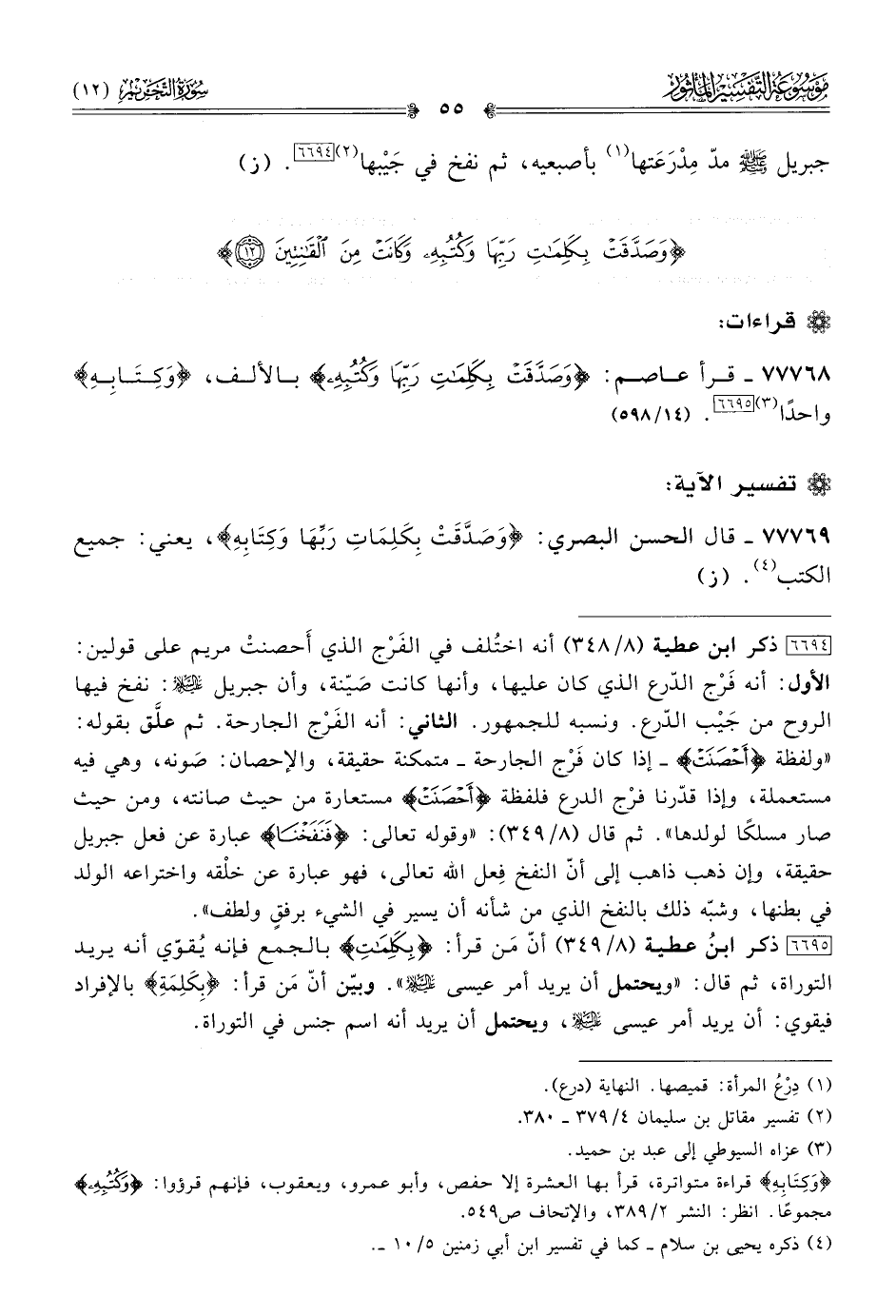 ٧٧٧٦٩ - قال الحسن البصري: «وصَدَّقَتْ بِكَلِماتِ رَبِّها وكِتابِهِ»، يعني: جميع الكتب (¬٤). (ز)