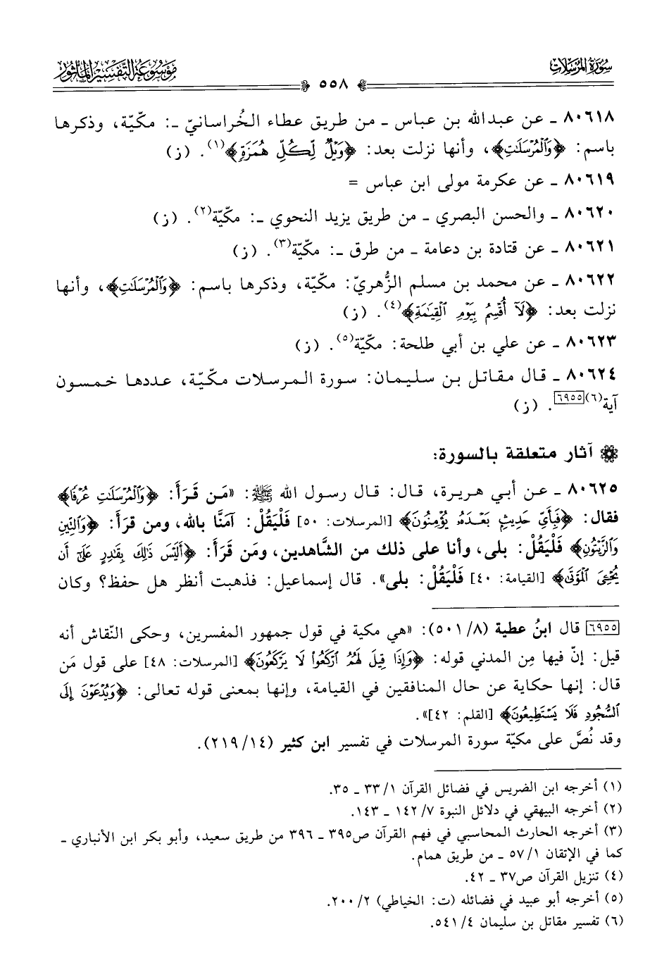 ٨٠٦٢٤ - قال مقاتل بن سليمان: سورة المرسلات مكّيّة، عددها خمسون آية (¬٦) [٦٩٥٥]. (ز)