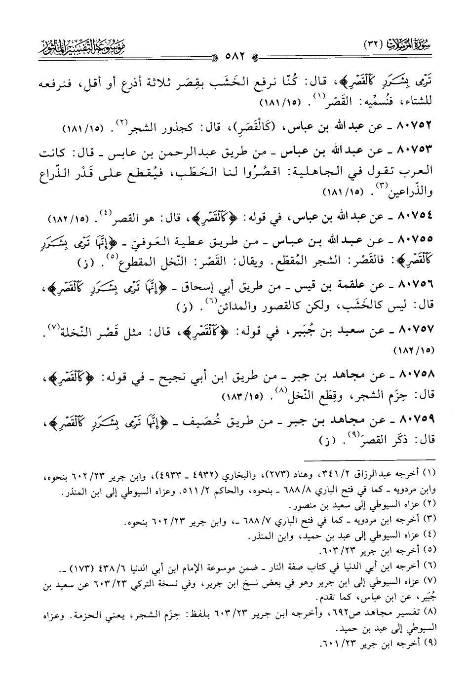 ٨٠٧٥٧ - عن سعيد بن جُبَير، في قوله: {كالقَصْرِ}، قال: مثل قَصْر النّخلة (¬٧). (١٥/ ١٨٢)