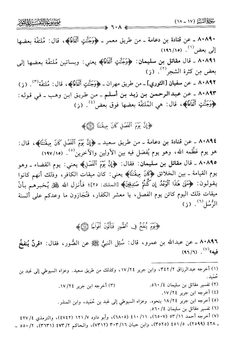 ٨٠٨٩٤ - عن قتادة بن دعامة -من طريق سعيد- {إنَّ يَوْمَ الفَصْلِ كانَ مِيقاتًا}، قال: هو يوم عَظَّمه الله، وهو يوم يُفصَل فيه بين الأولين والآخرين (¬٥). (١٥/ ١٩٧)