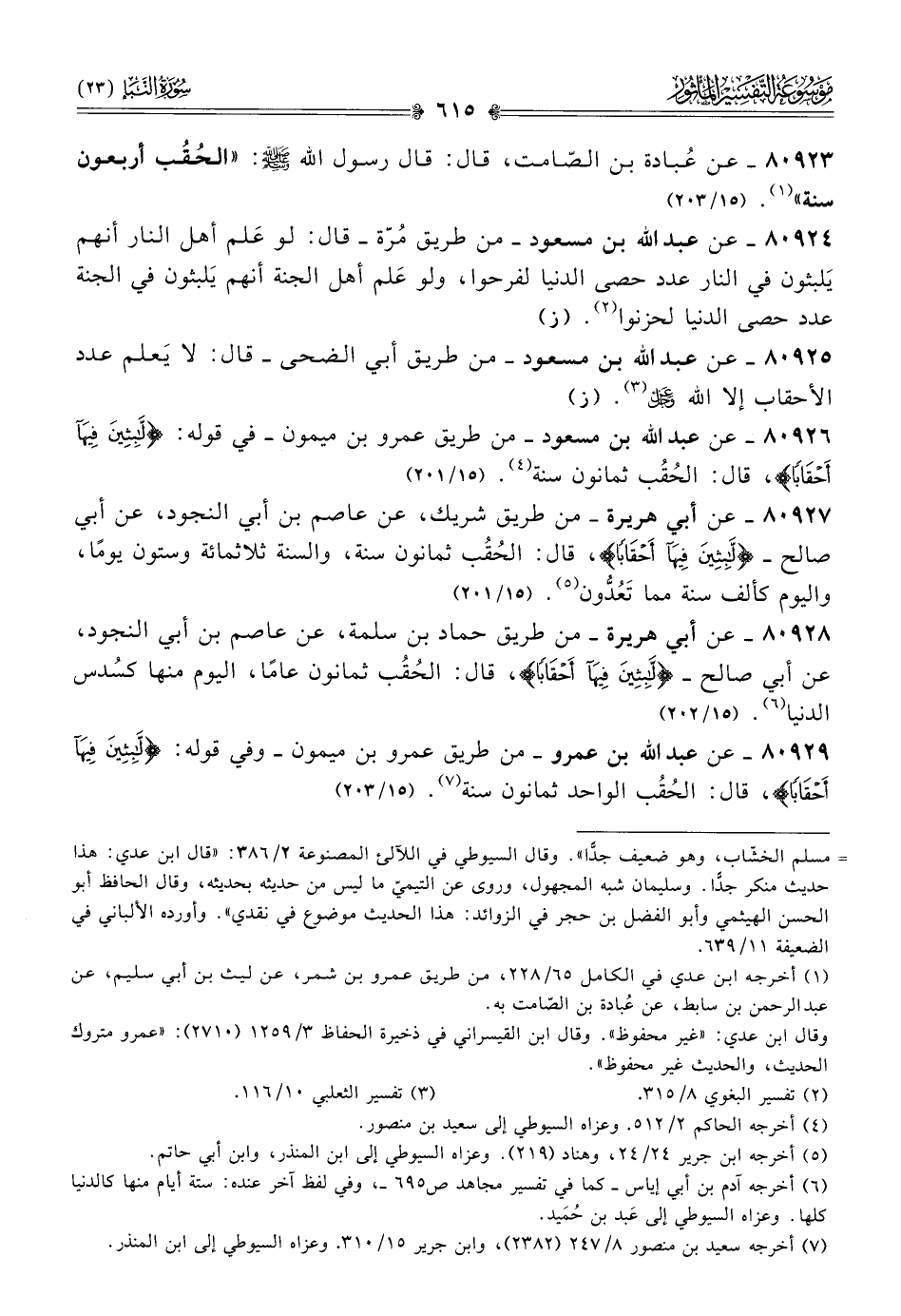٨٠٩٢٥ - عن عبد الله بن مسعود -من طريق أبي الضحى- قال: لا يَعلم عدد الأحقاب إلا الله - عز وجل - (¬٣). (ز)