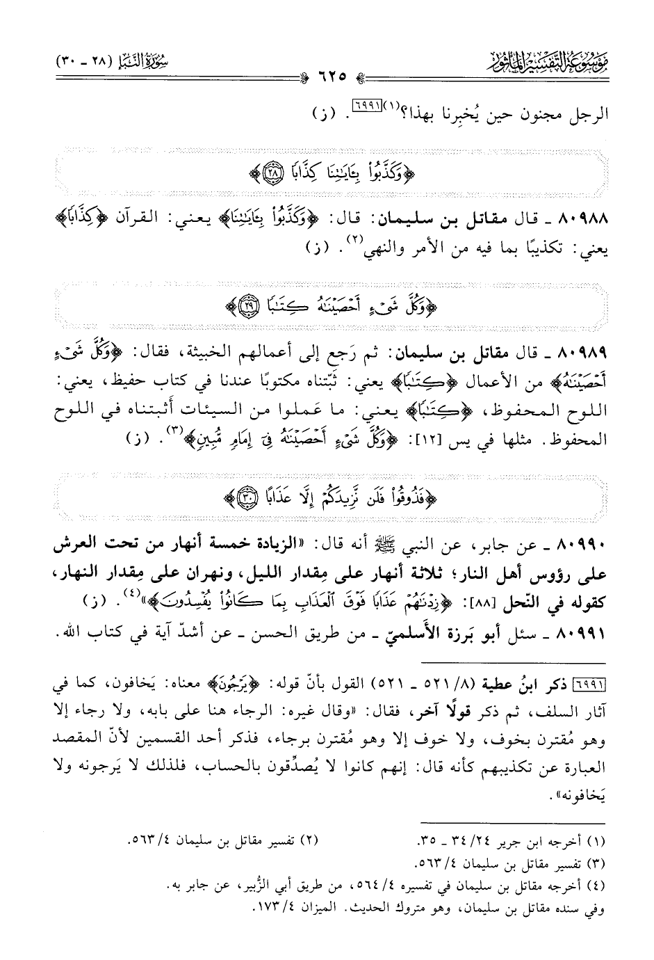 ٨٠٩٨٨ - قال مقاتل بن سليمان: قال: {وكَذَّبُوا بِآياتِنا} يعني: القرآن {كِذّابًا} يعني: تكذيبًا بما فيه من الأمر والنهي (¬٢). (ز)