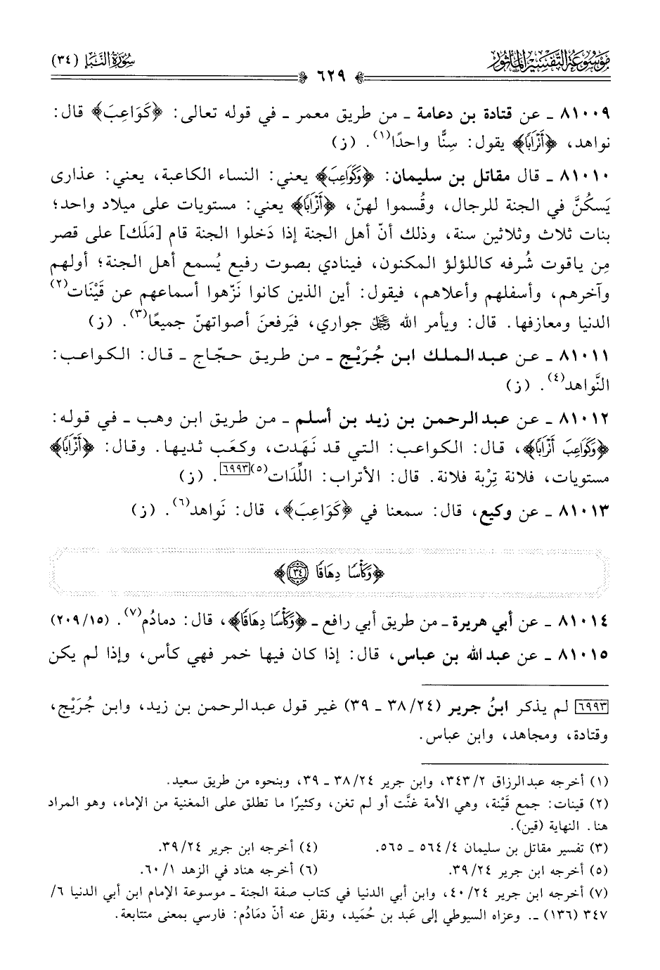 (¬١) أخرجه عبد الرزاق ٢/ ٣٤٣، وابن جرير ٢٤/ ٣٨ - ٣٩، وبنحوه من طريق سعيد.