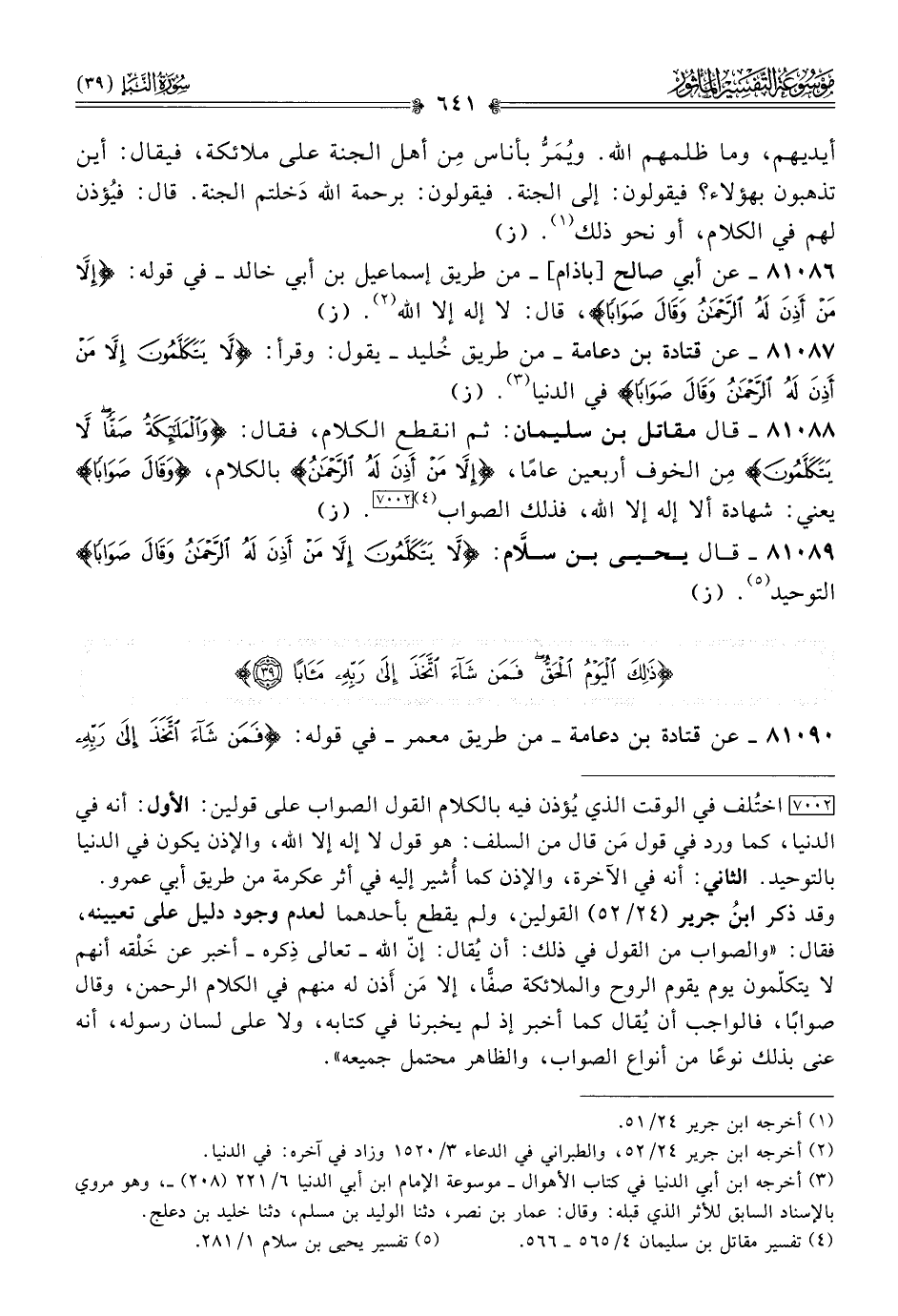 ٨١٠٨٩ - قال يحيى بن سلّام: {لا يتكلمون إلا من أذن له الرحمن وقال صوابا} التوحيد (¬٥). (ز)